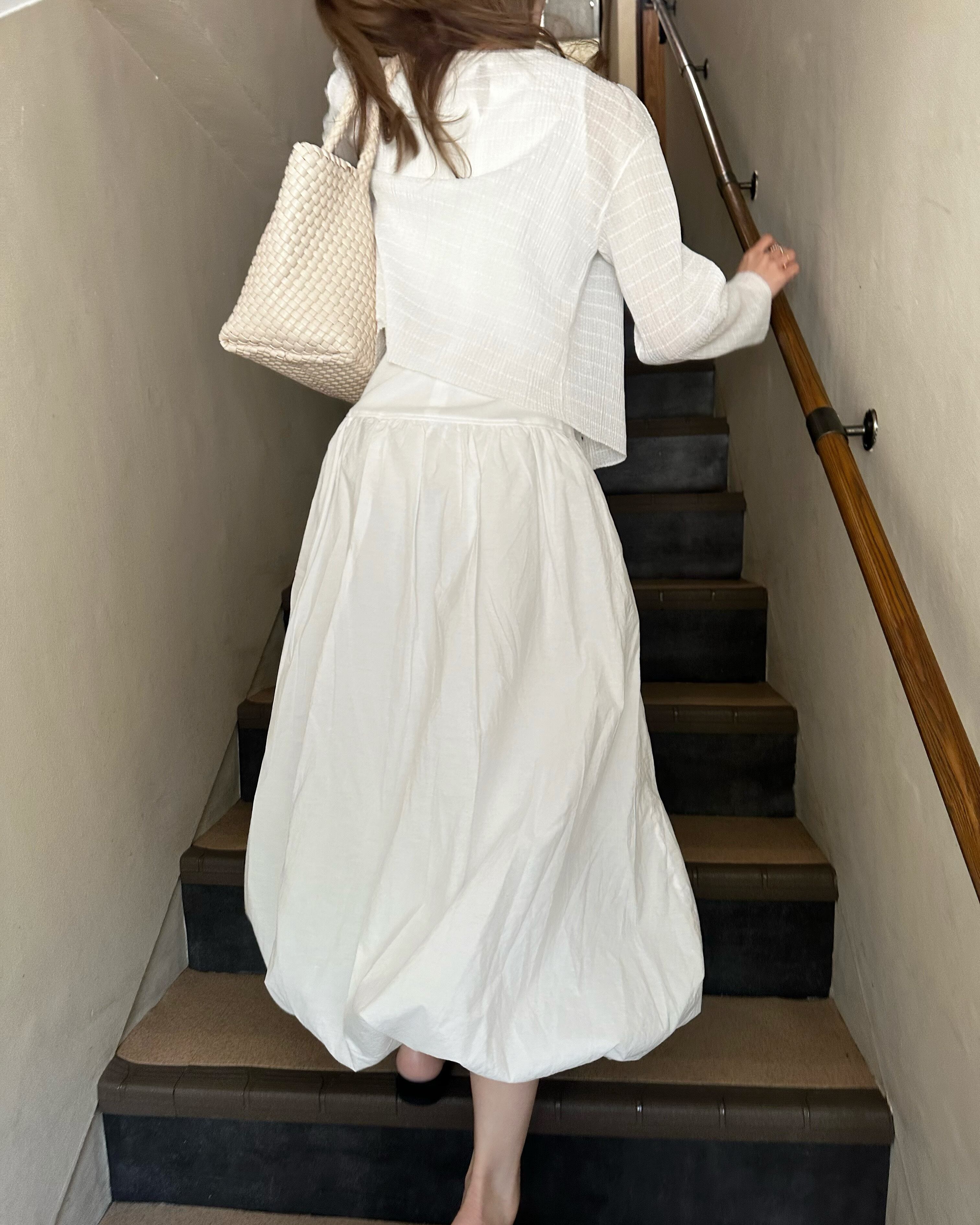 可愛らしいバルーンシルエットは旅先でも映える一着。