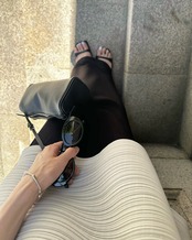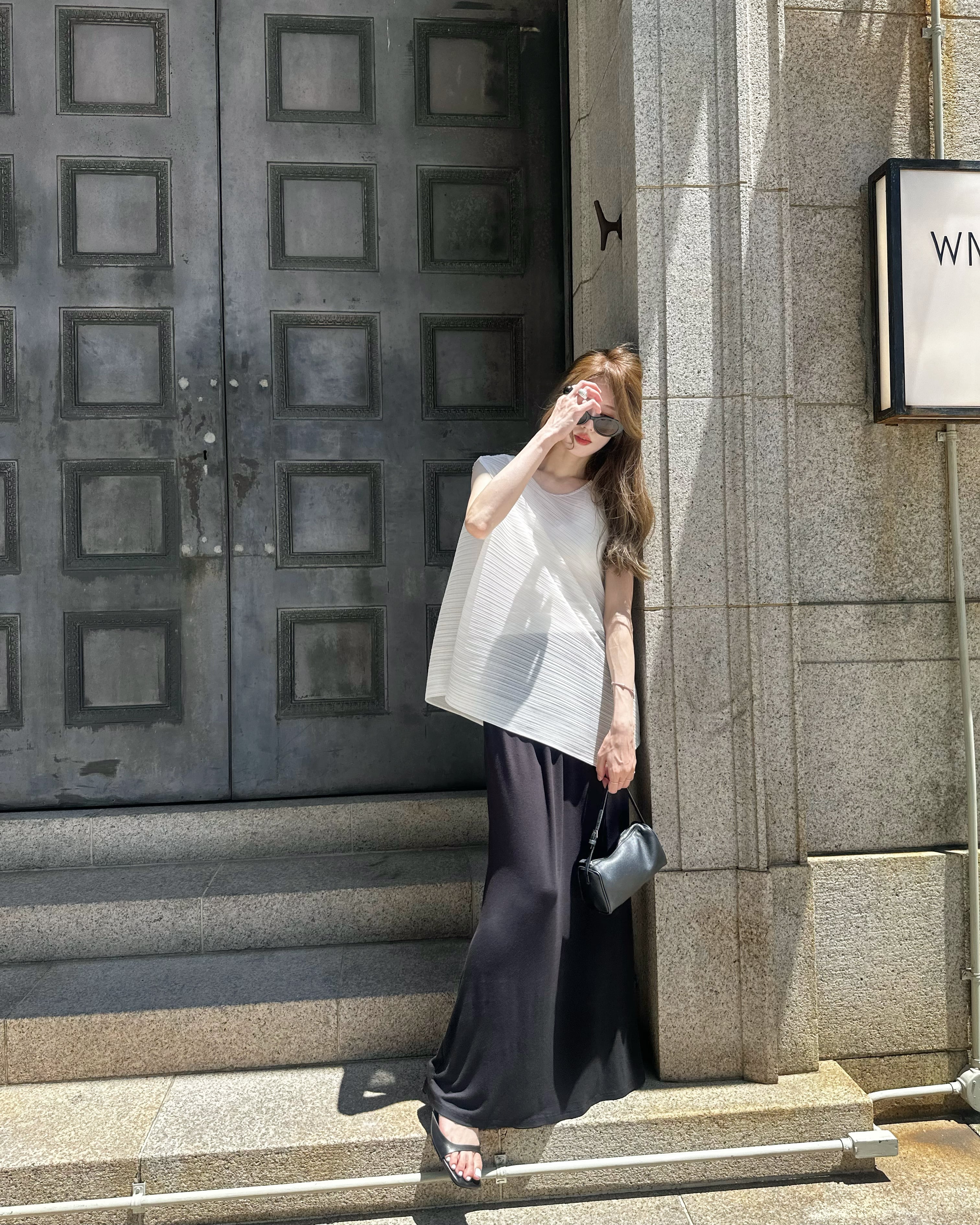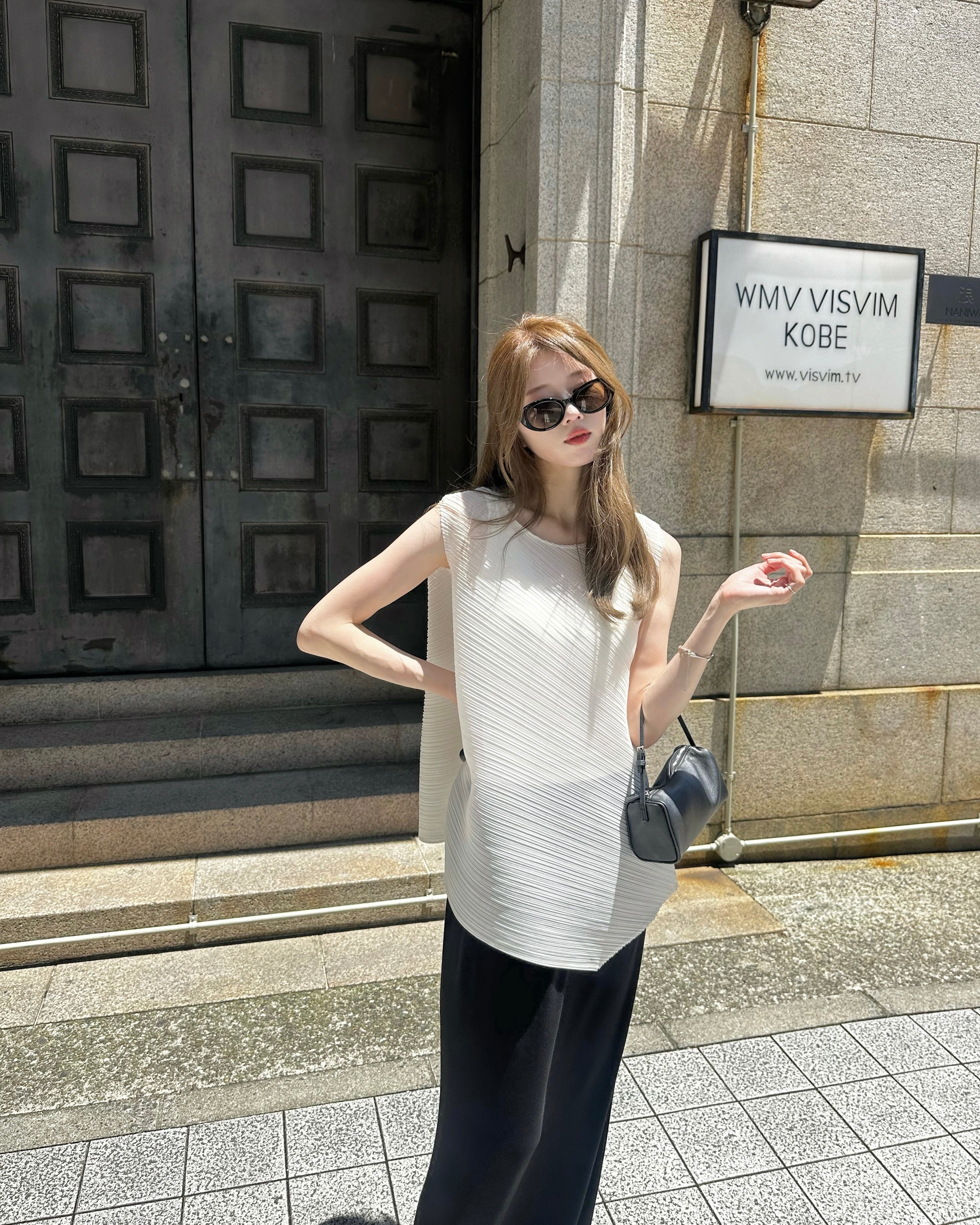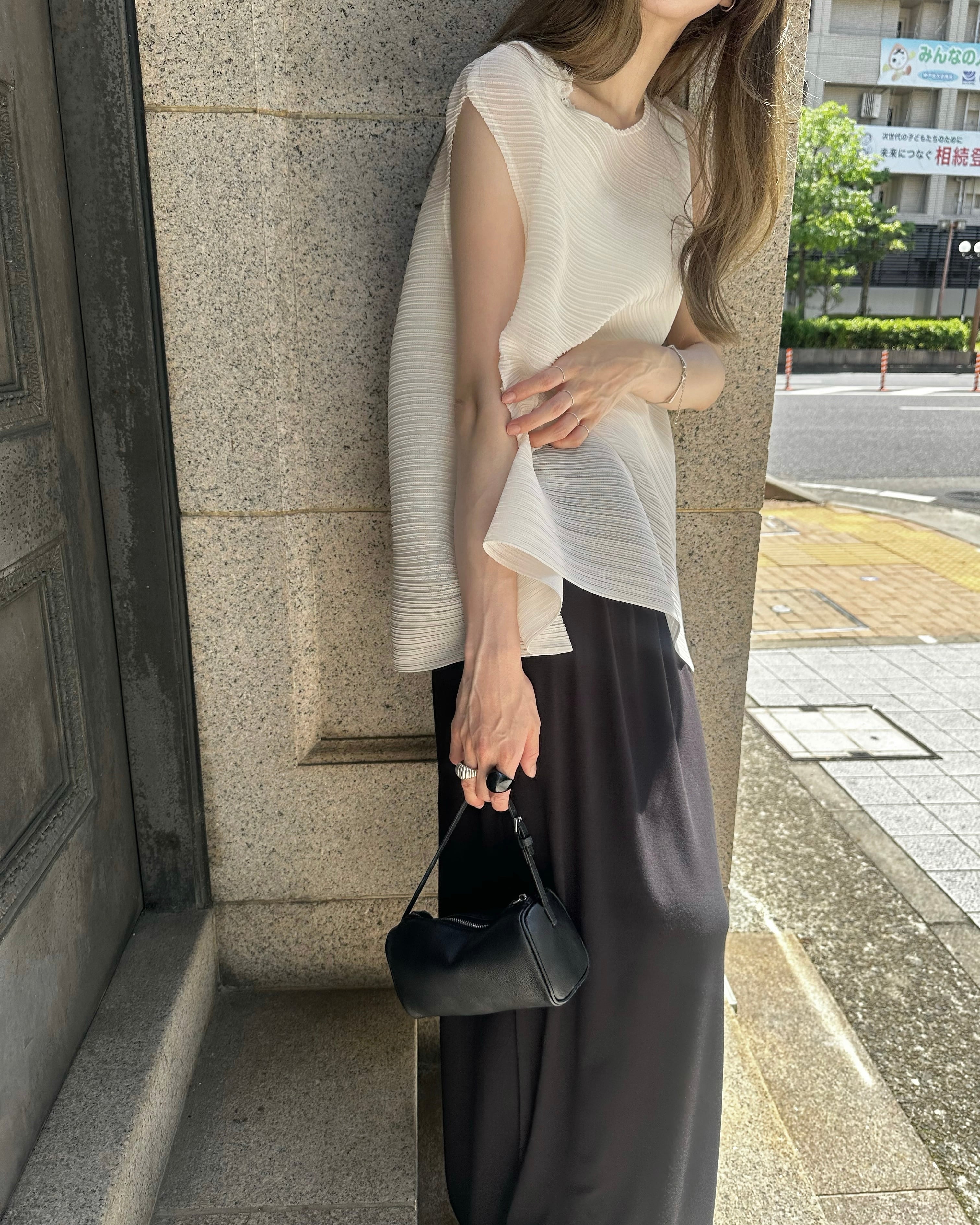 繊細なプリーツにシアー感が大人っぽく、立体フレアシルエットがエレガントな印象を与えます。