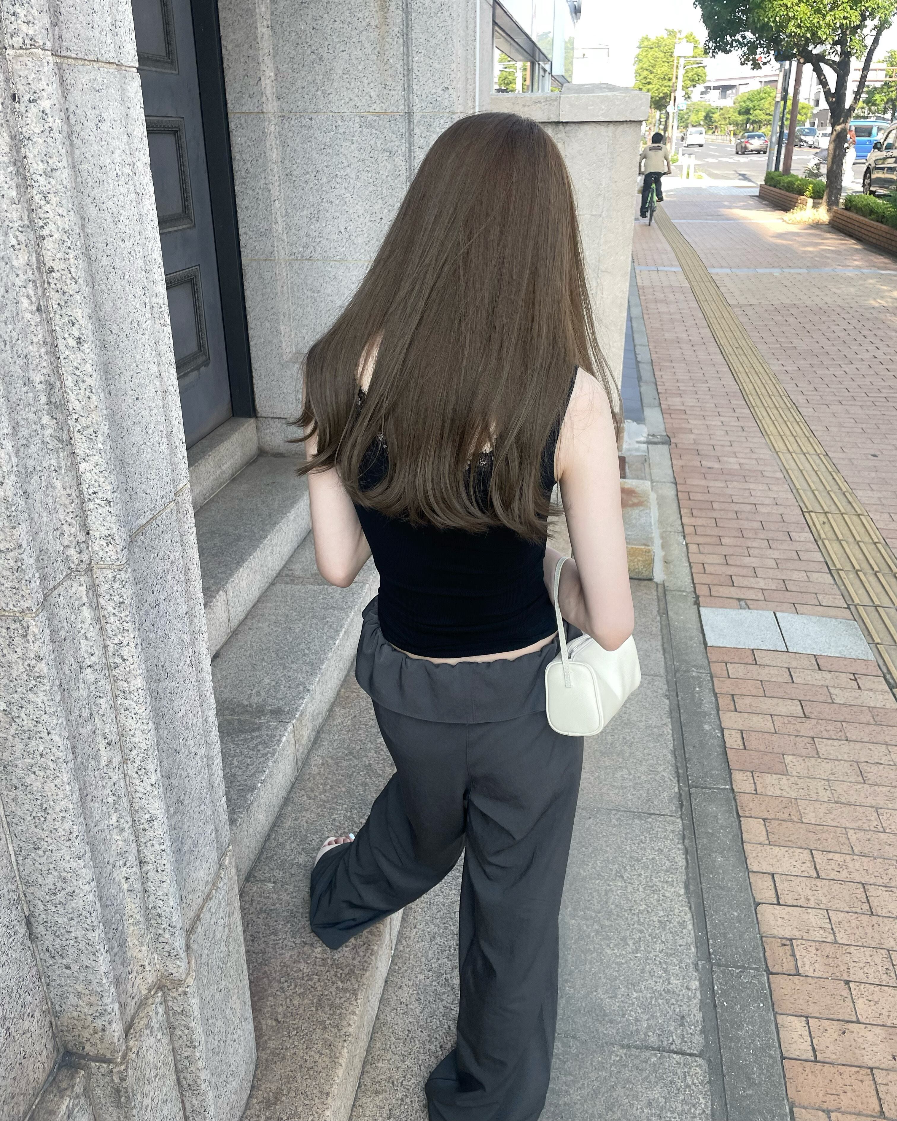 落ち感のあるゆるシルエットが大人っぽく、センターラインが美シルエットを保ちます。