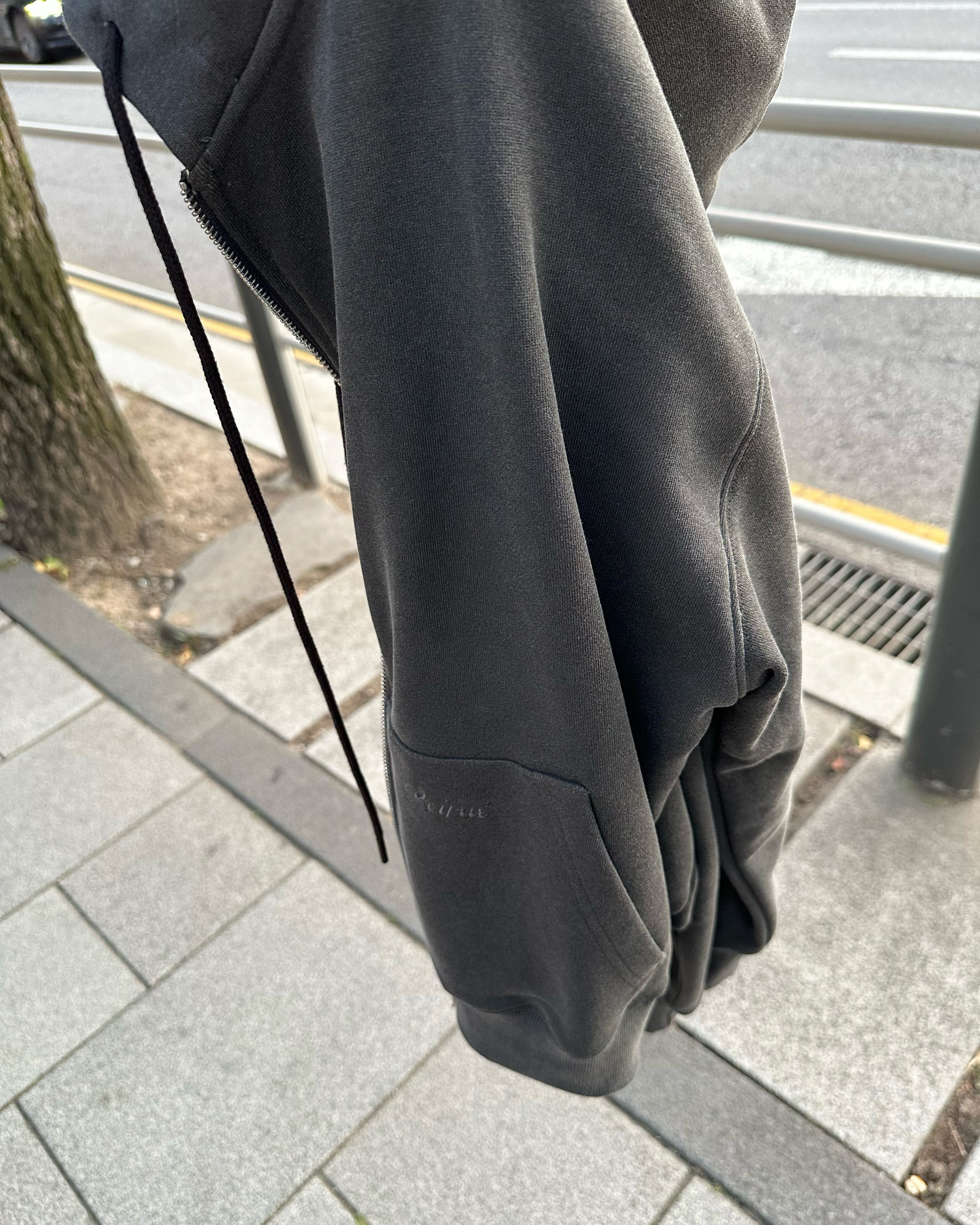 無駄な装飾を省き、ドライな質感と褪せたチャコールカラーが洗練された印象に。