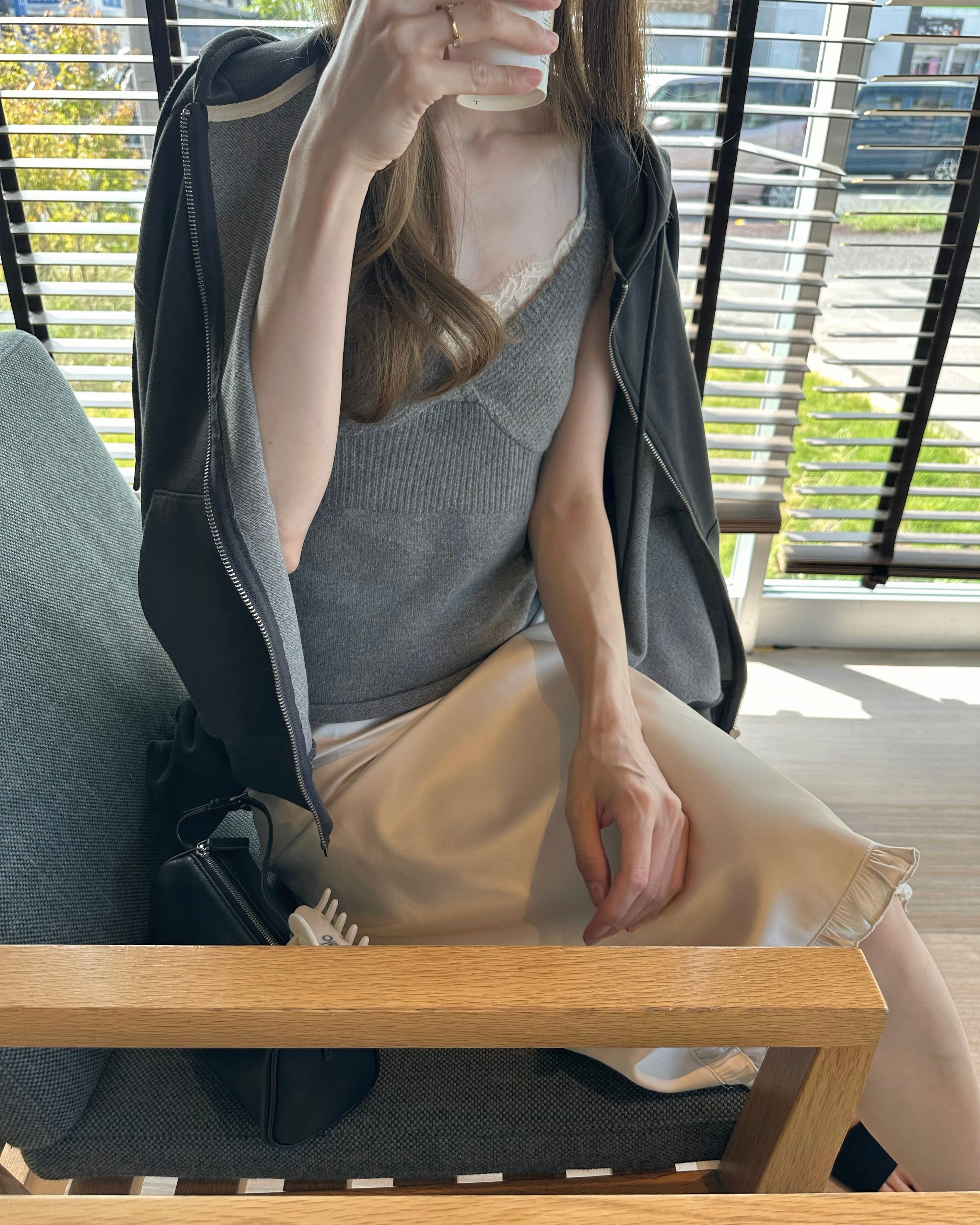 オーバーすぎずにゆるりとしたサイジングで、カジュアルダウンしすぎることなく女性らしい雰囲気が残ります。