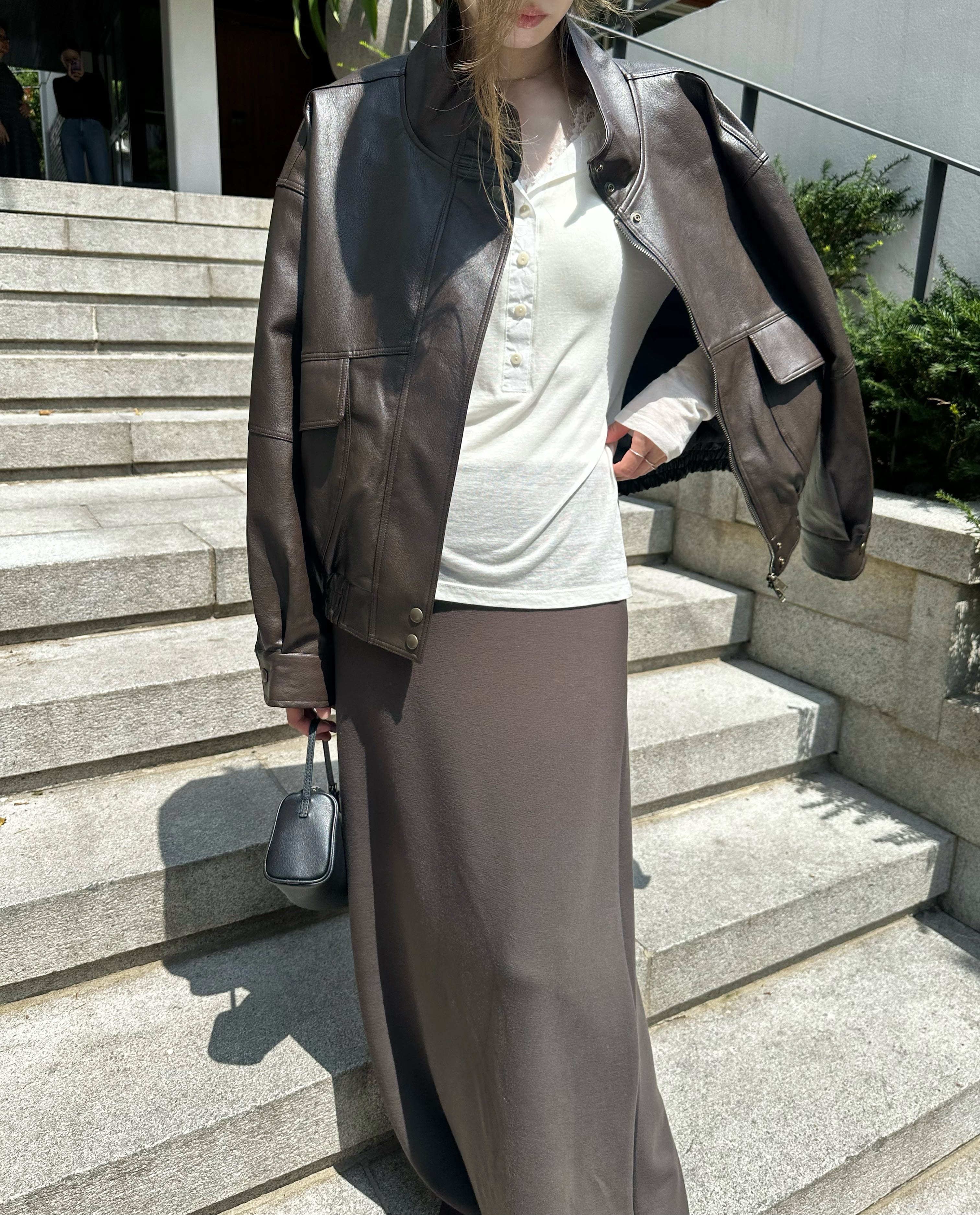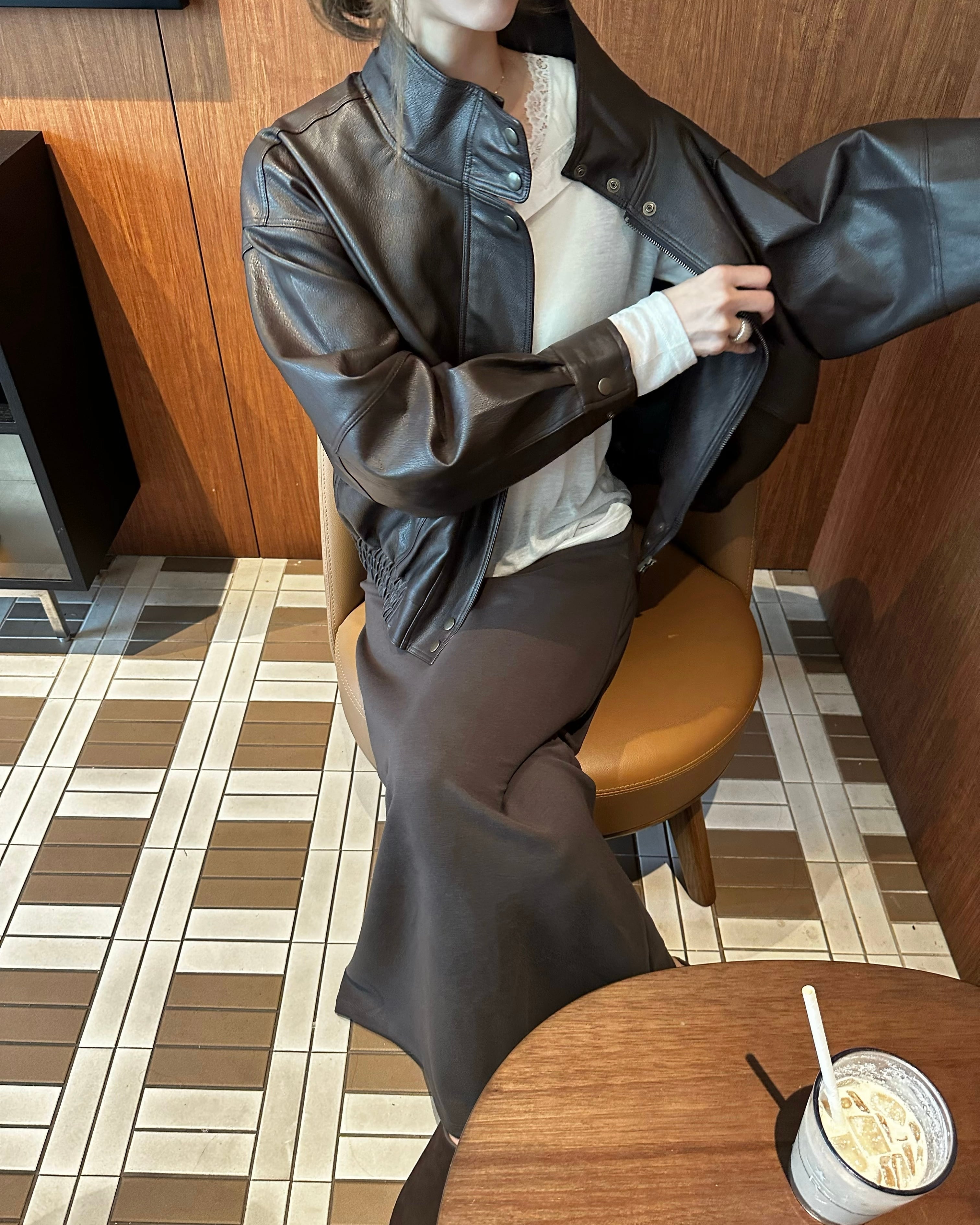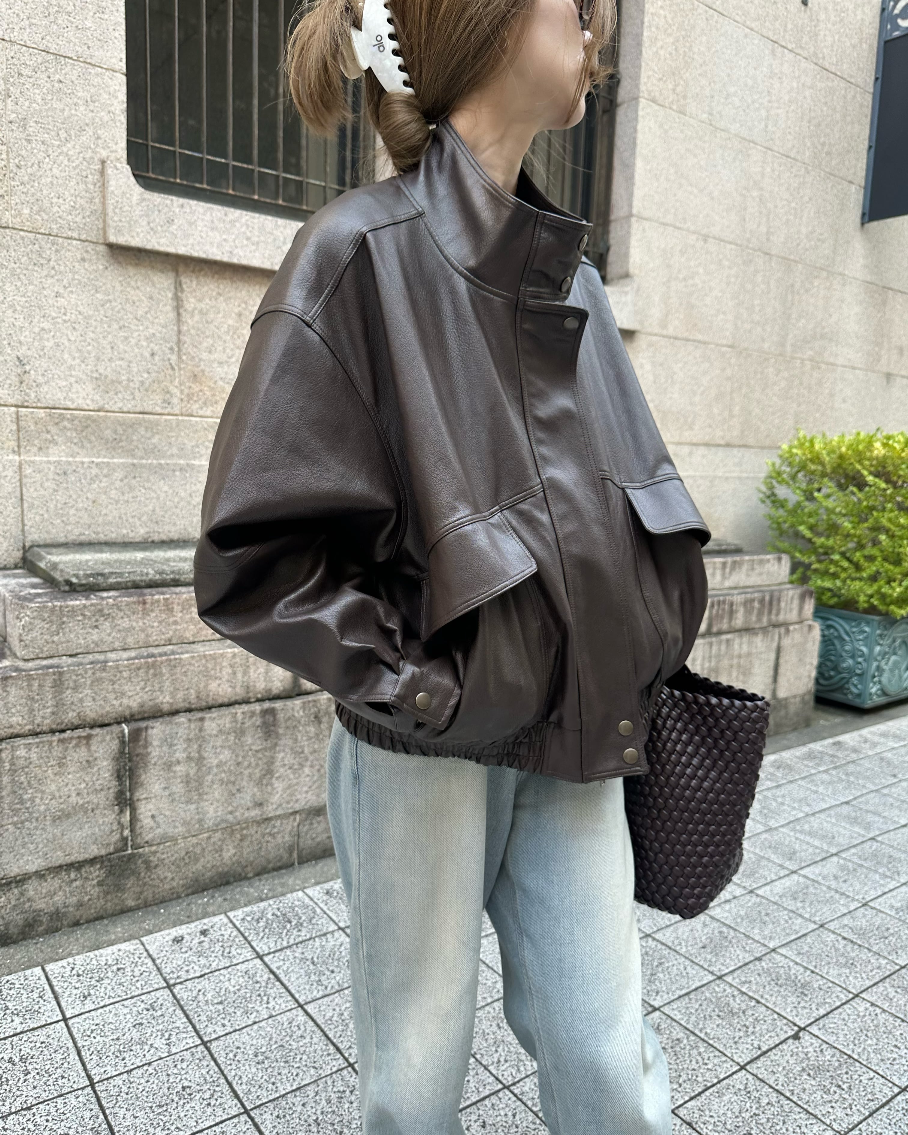 ドライな質感にダークブラウンカラーが綺麗な今季一押しのレザージャケット。