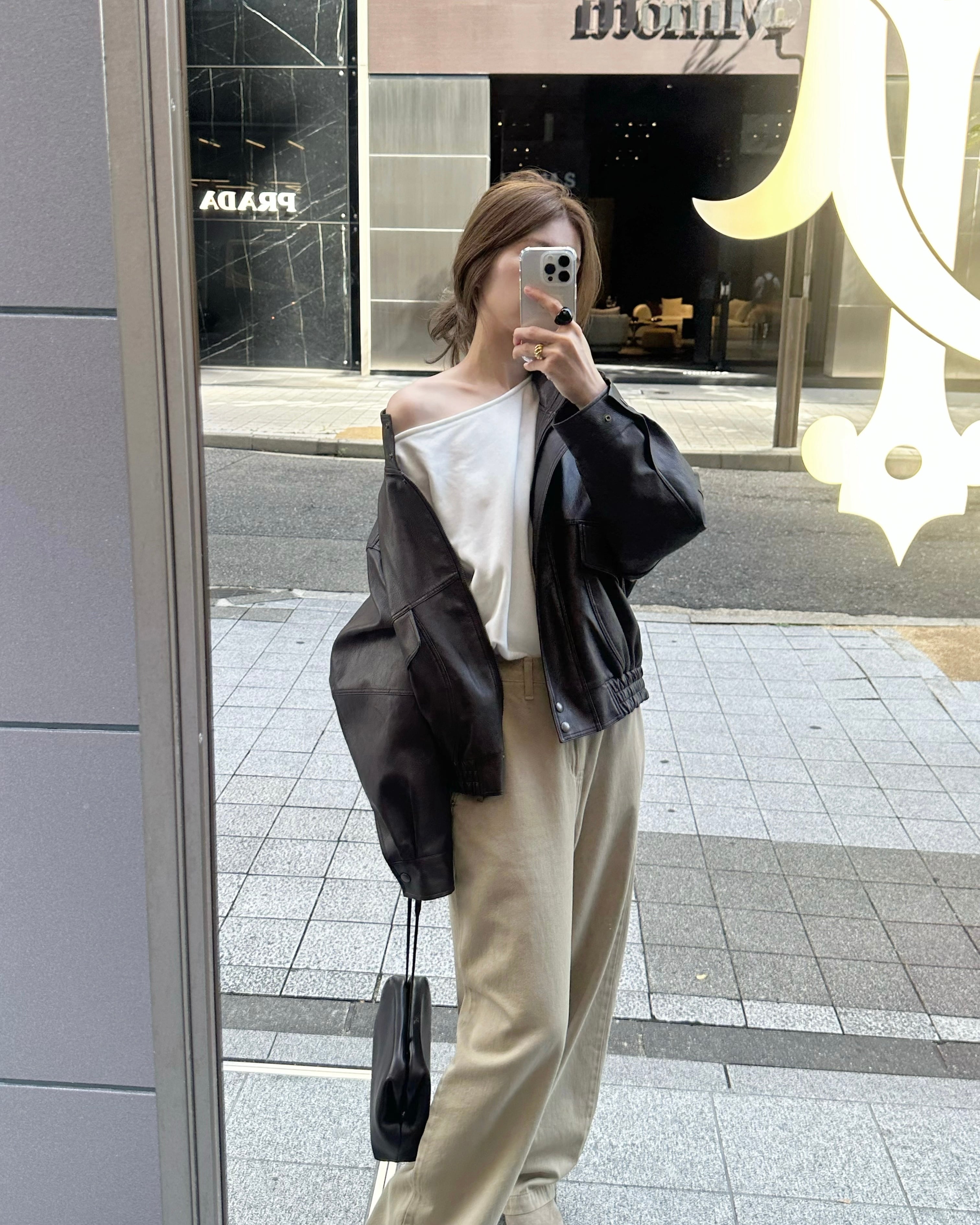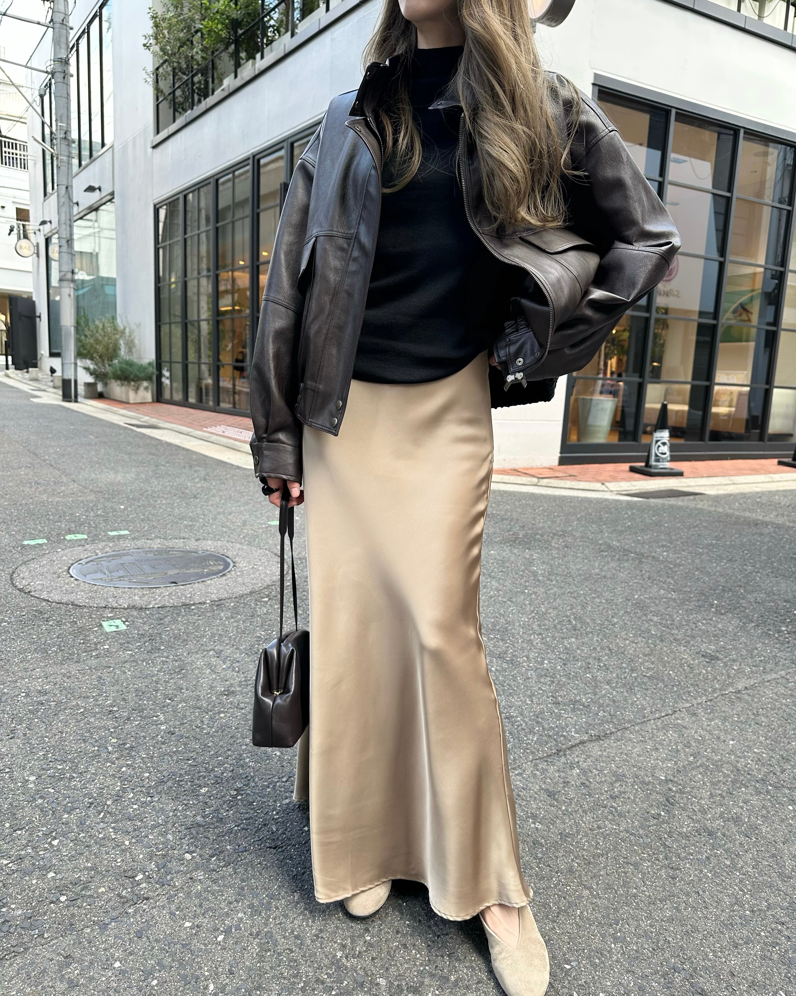 程よいオーバーなサイジングに丸みのあるシルエットで、ハードにならず上品な印象に。