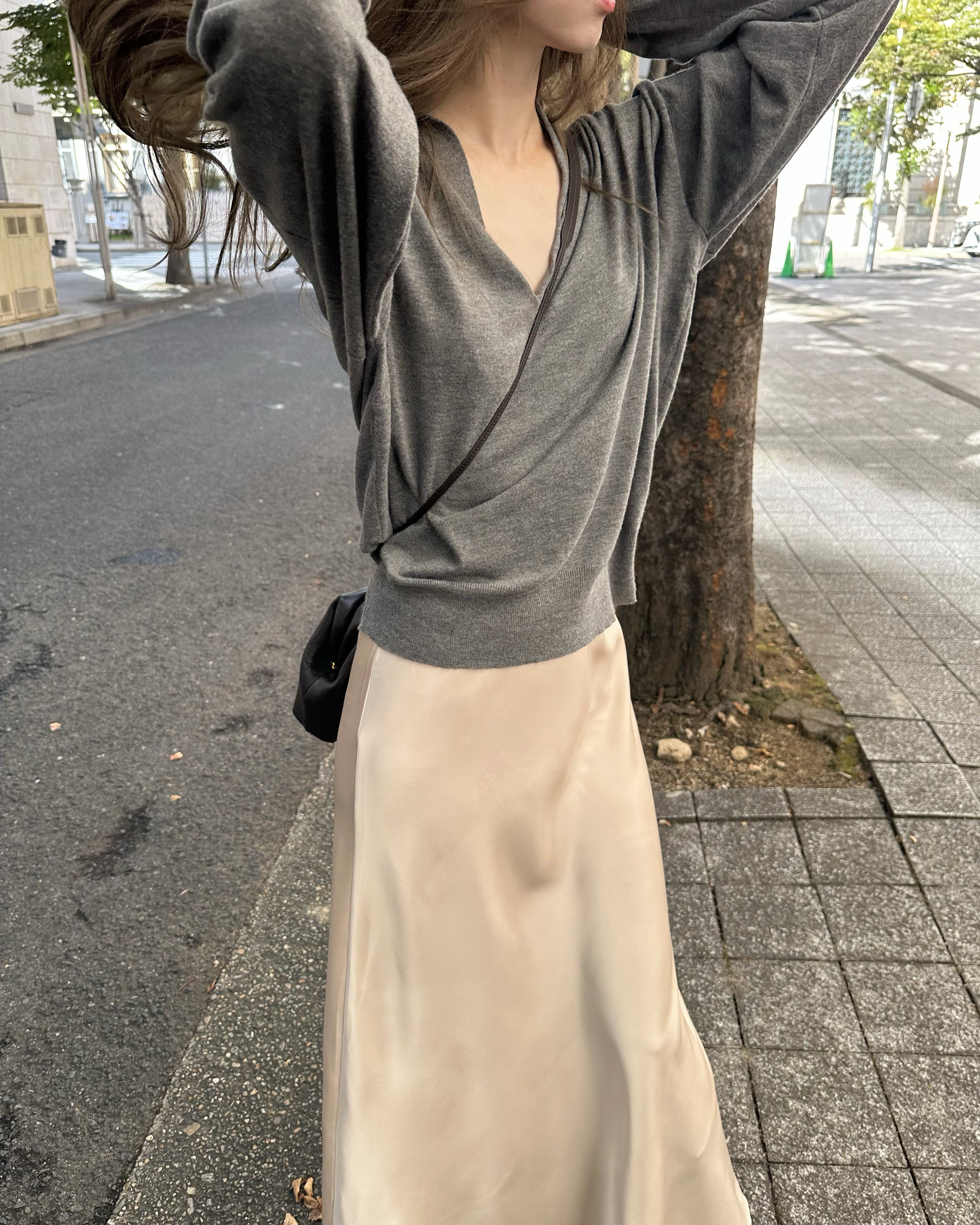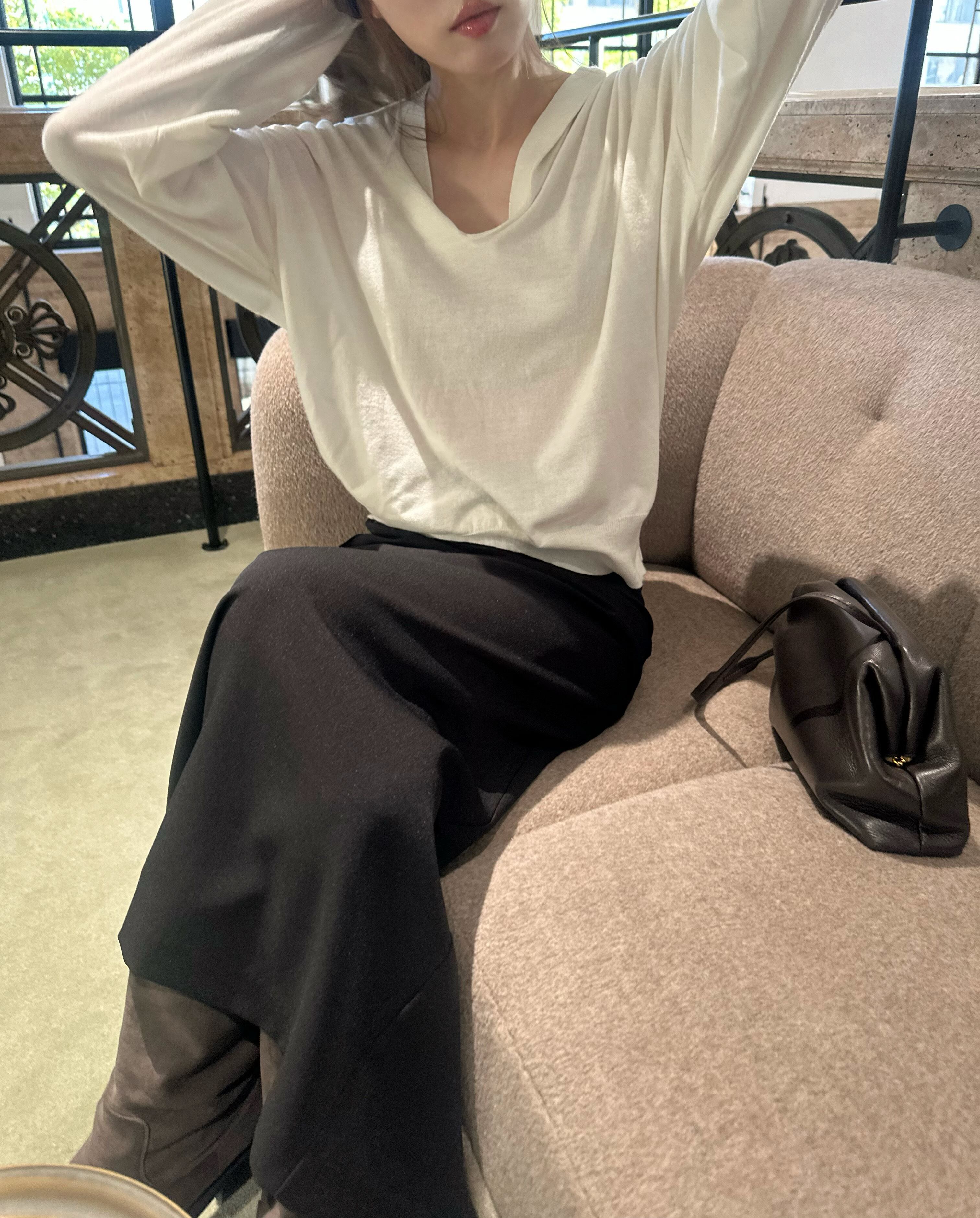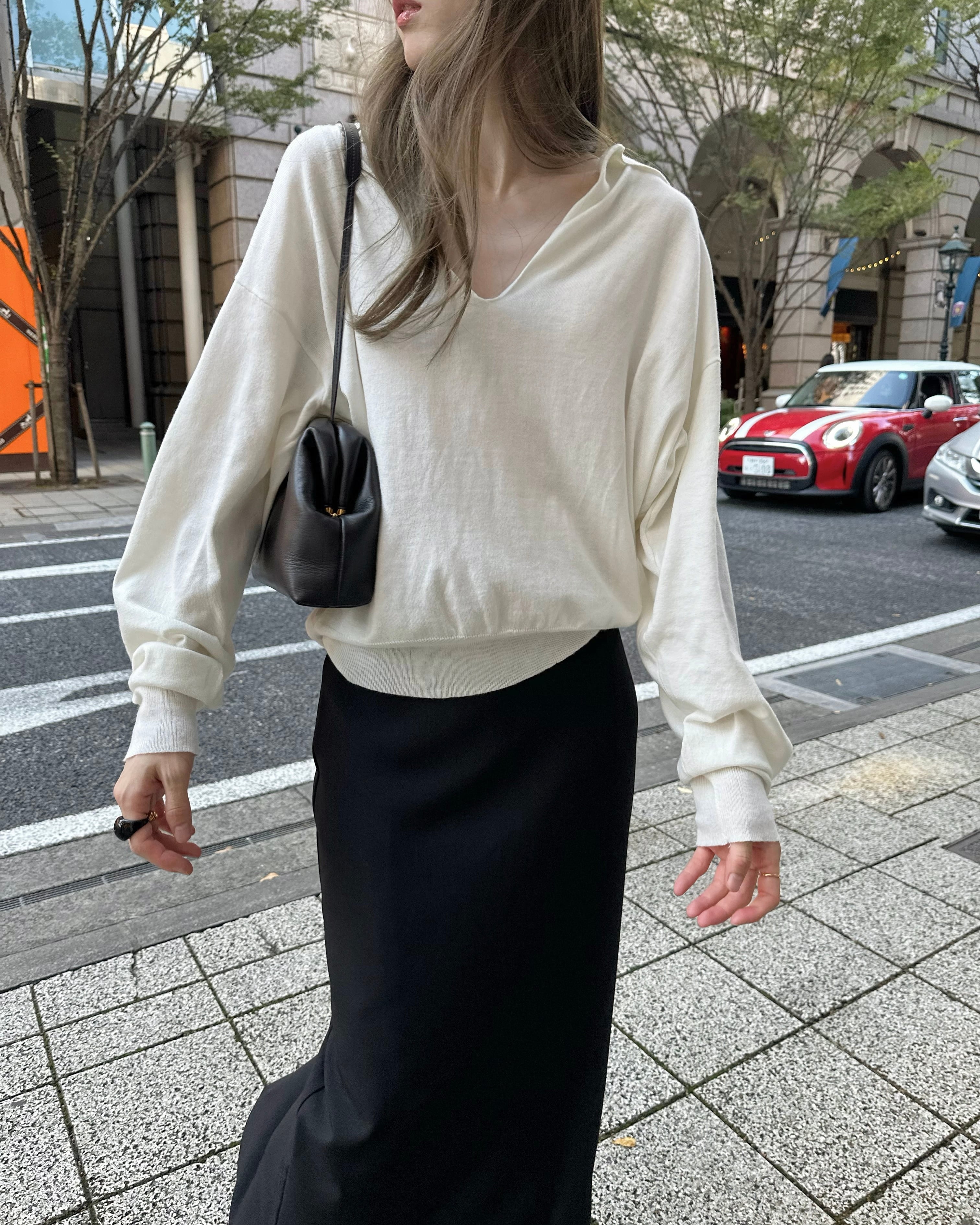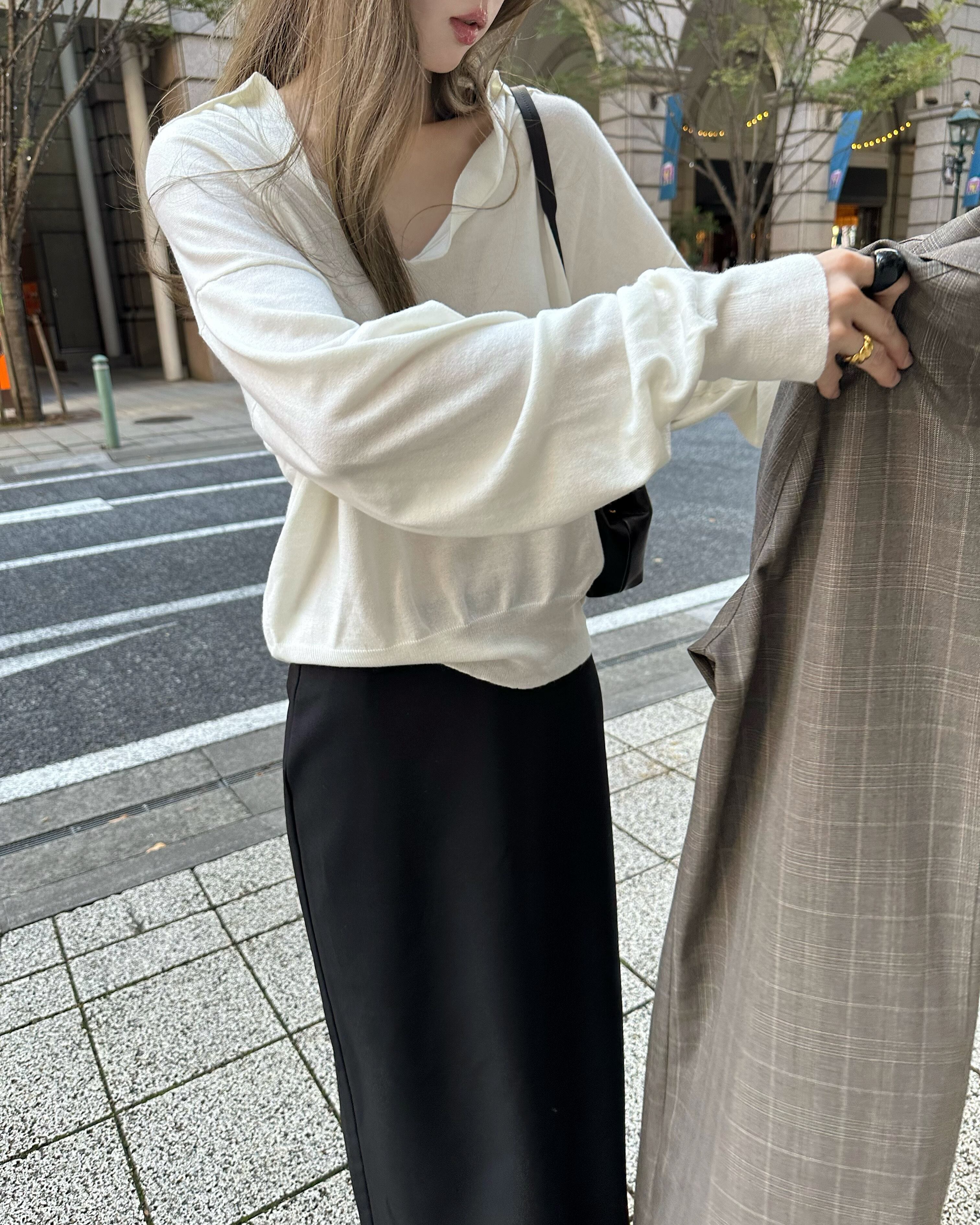 抜け感のある深いVネックがポイント。