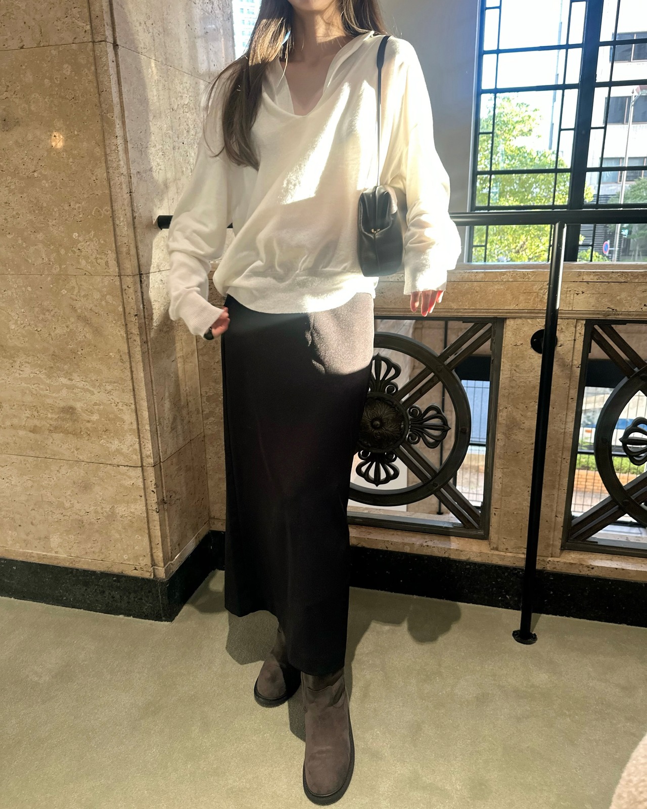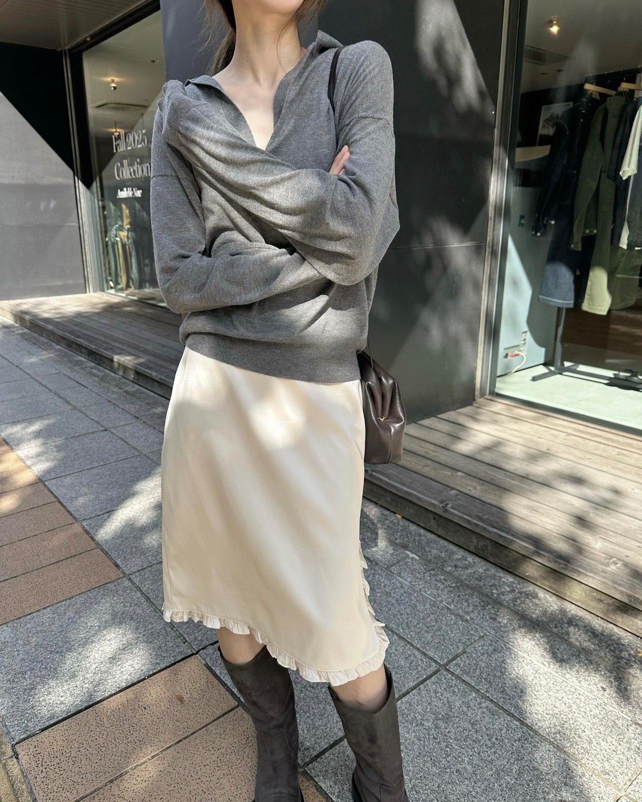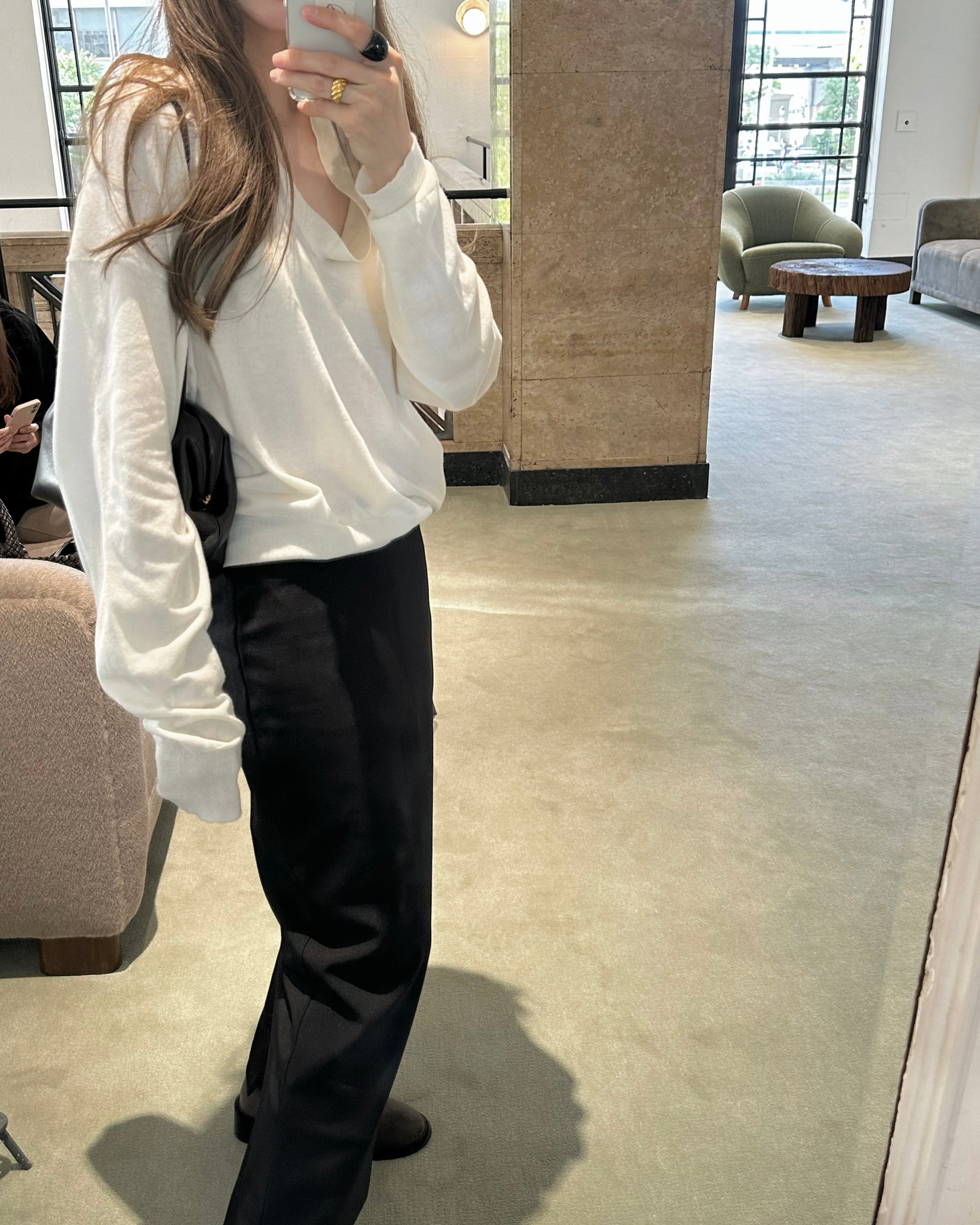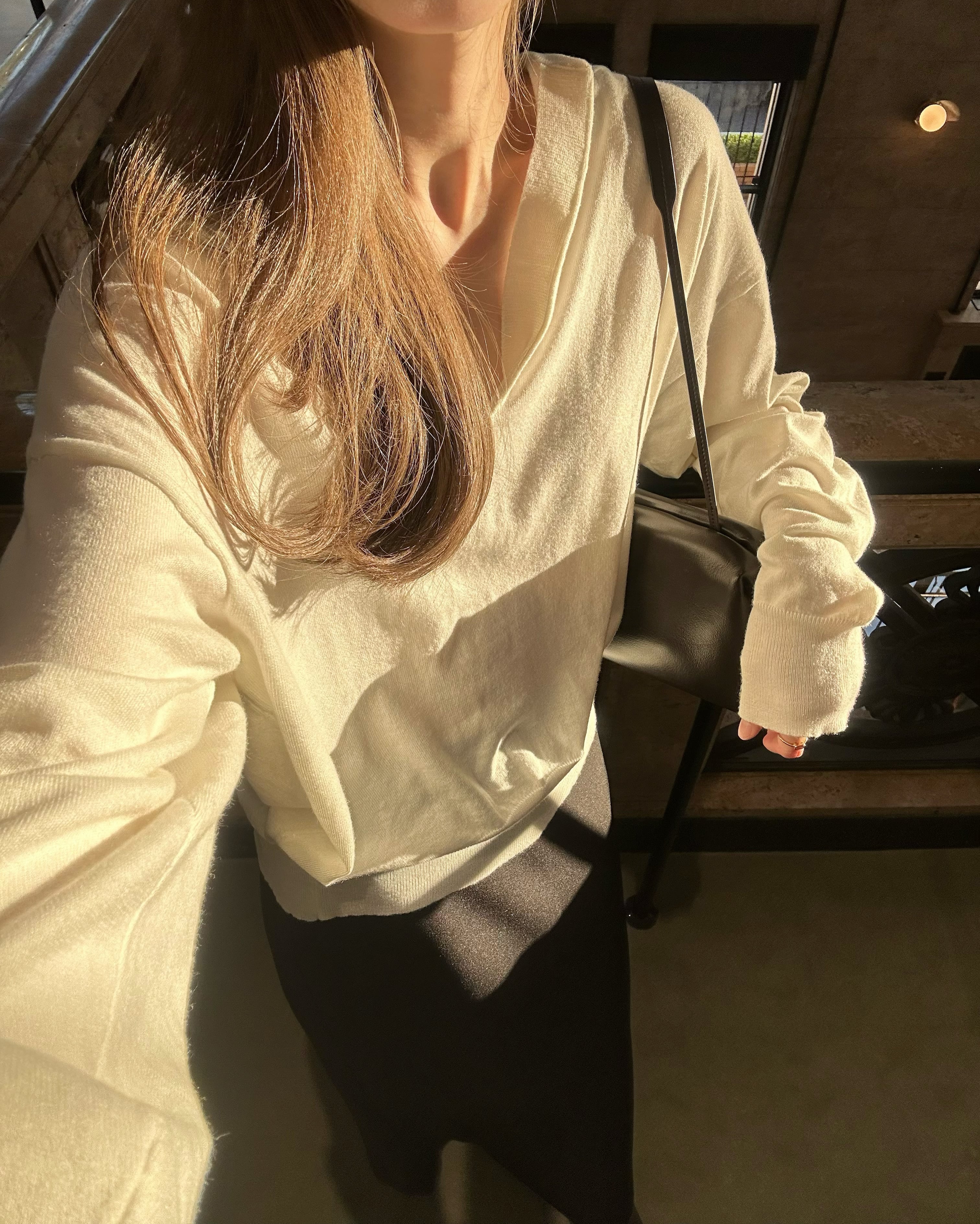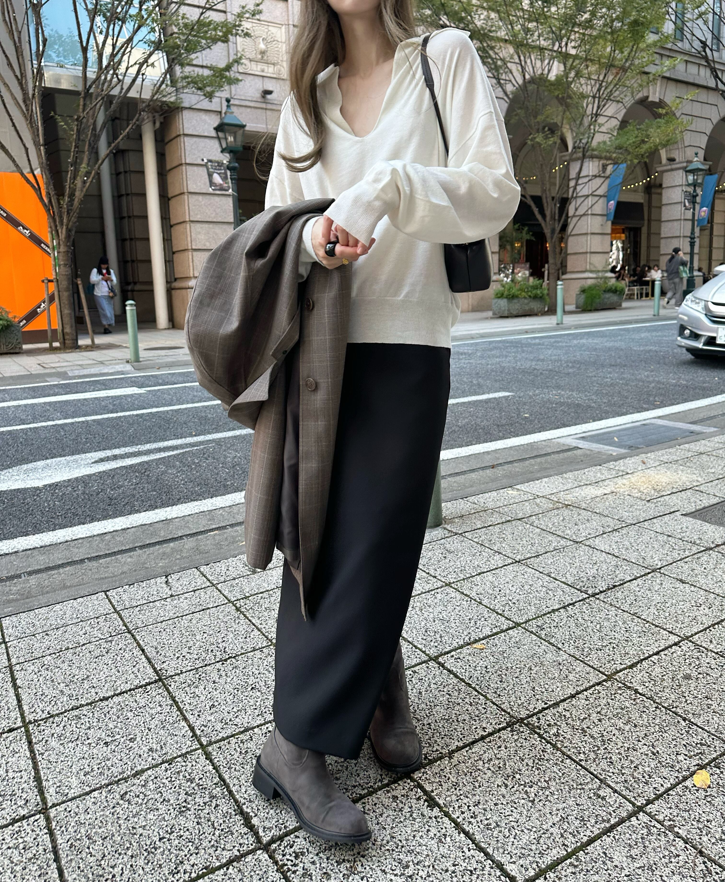 抜け感のある深いVネックがポイント。