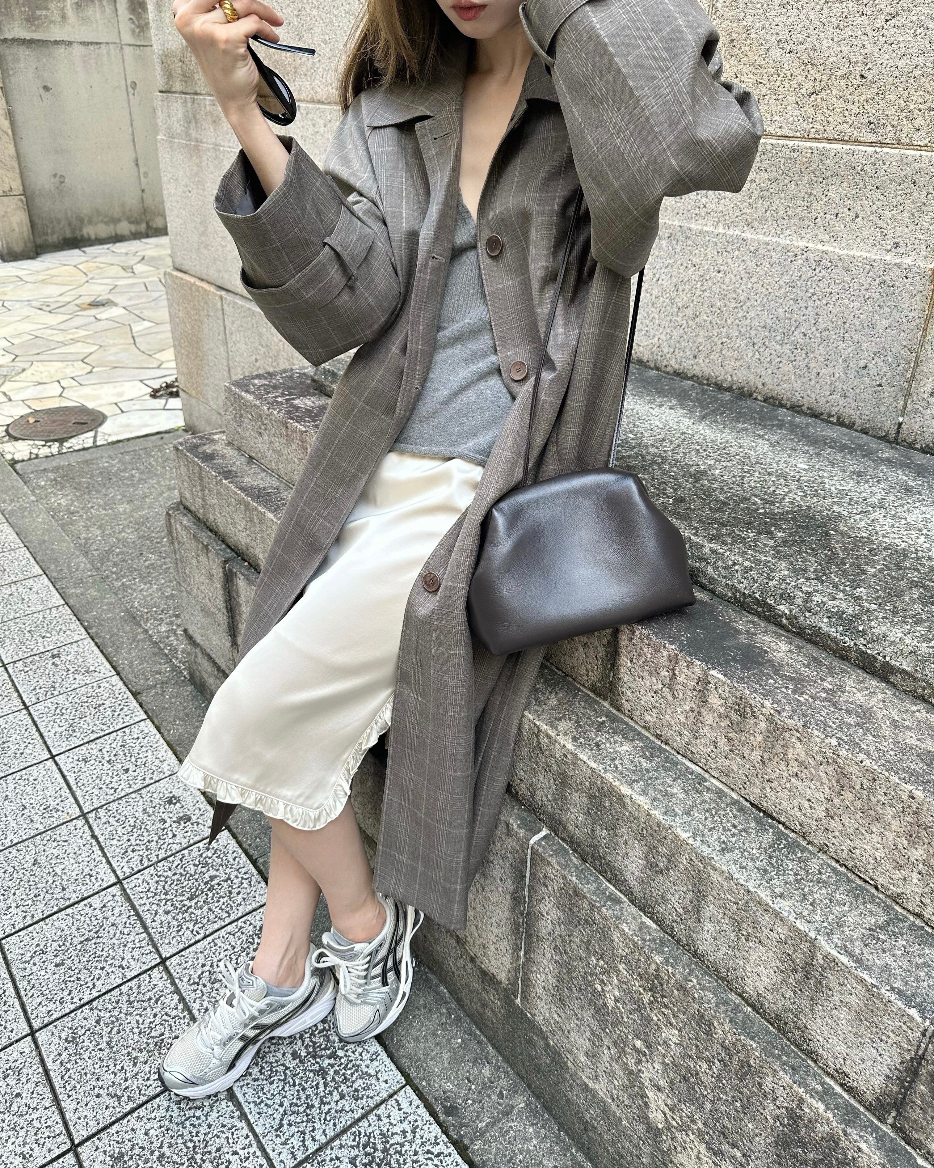胸元のフリルディティールや切り替えラインなど細部までこだわった、女性らしく柔らかなムード漂います。