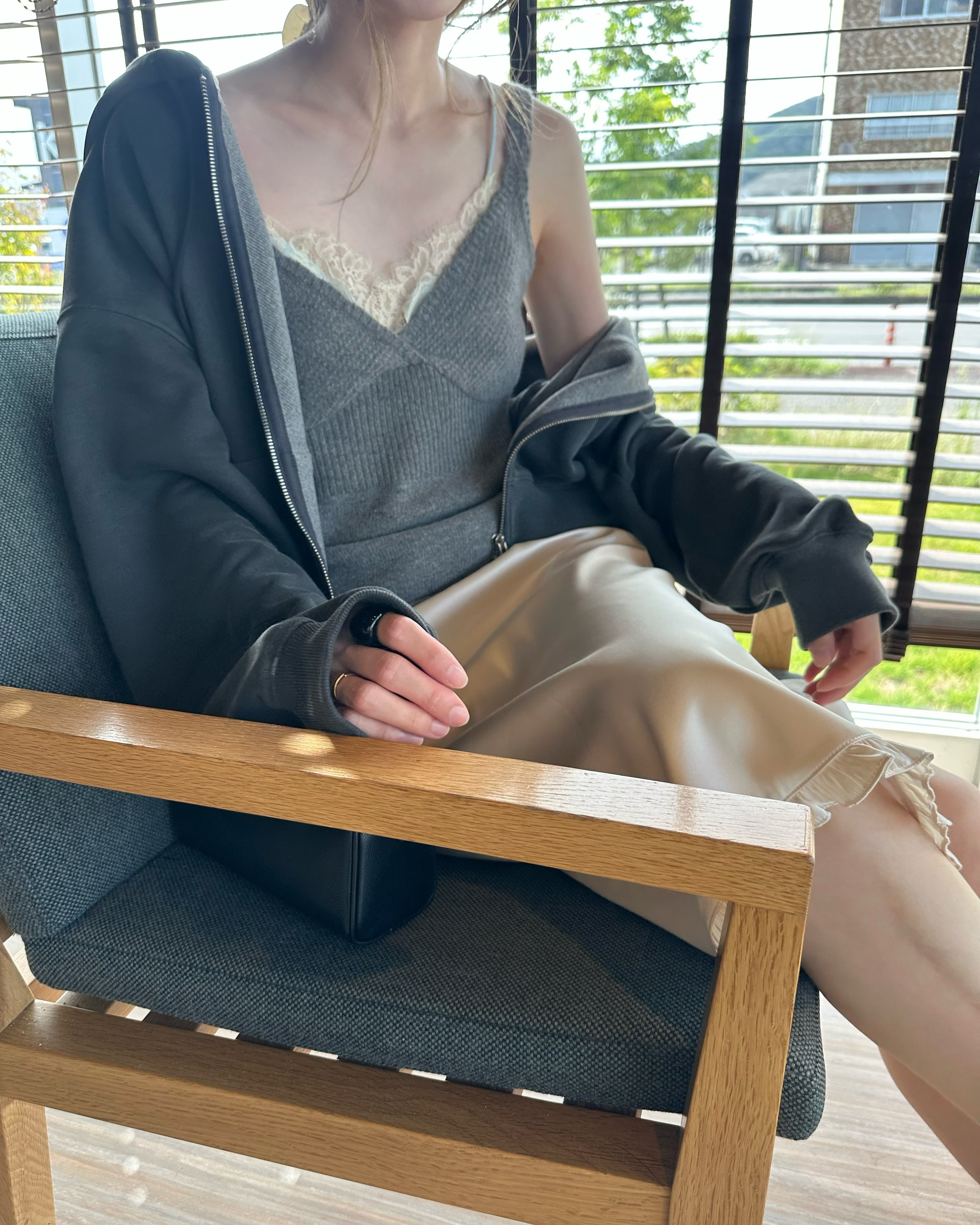 カットソーとレイヤードしたり、ジャケットのインナーとして甘さをプラスして♡