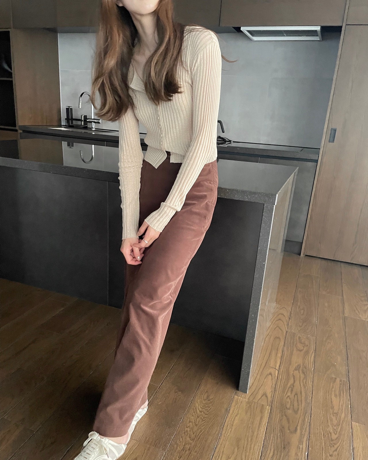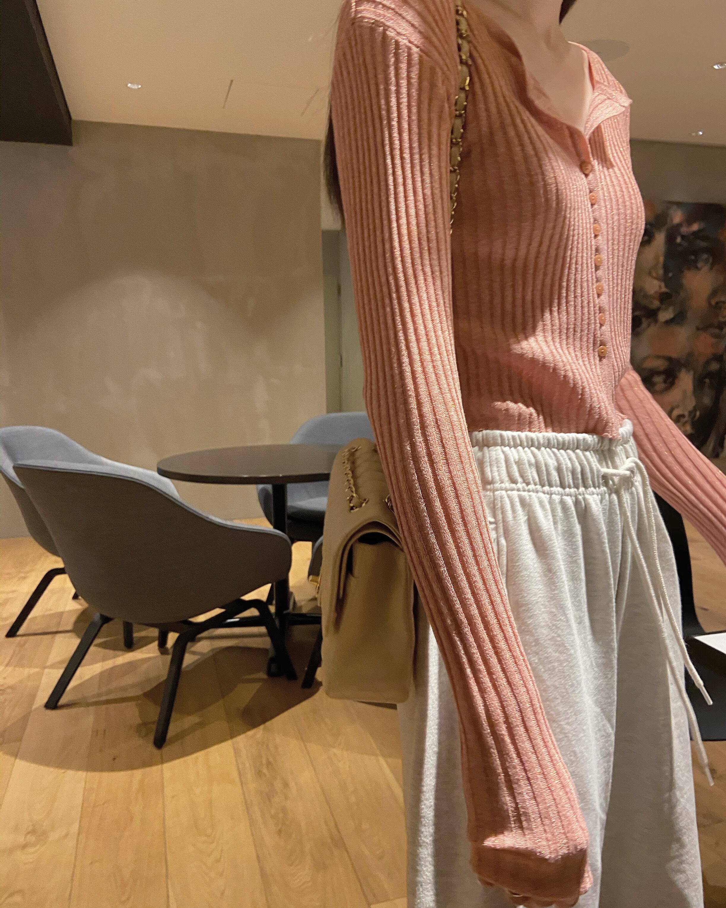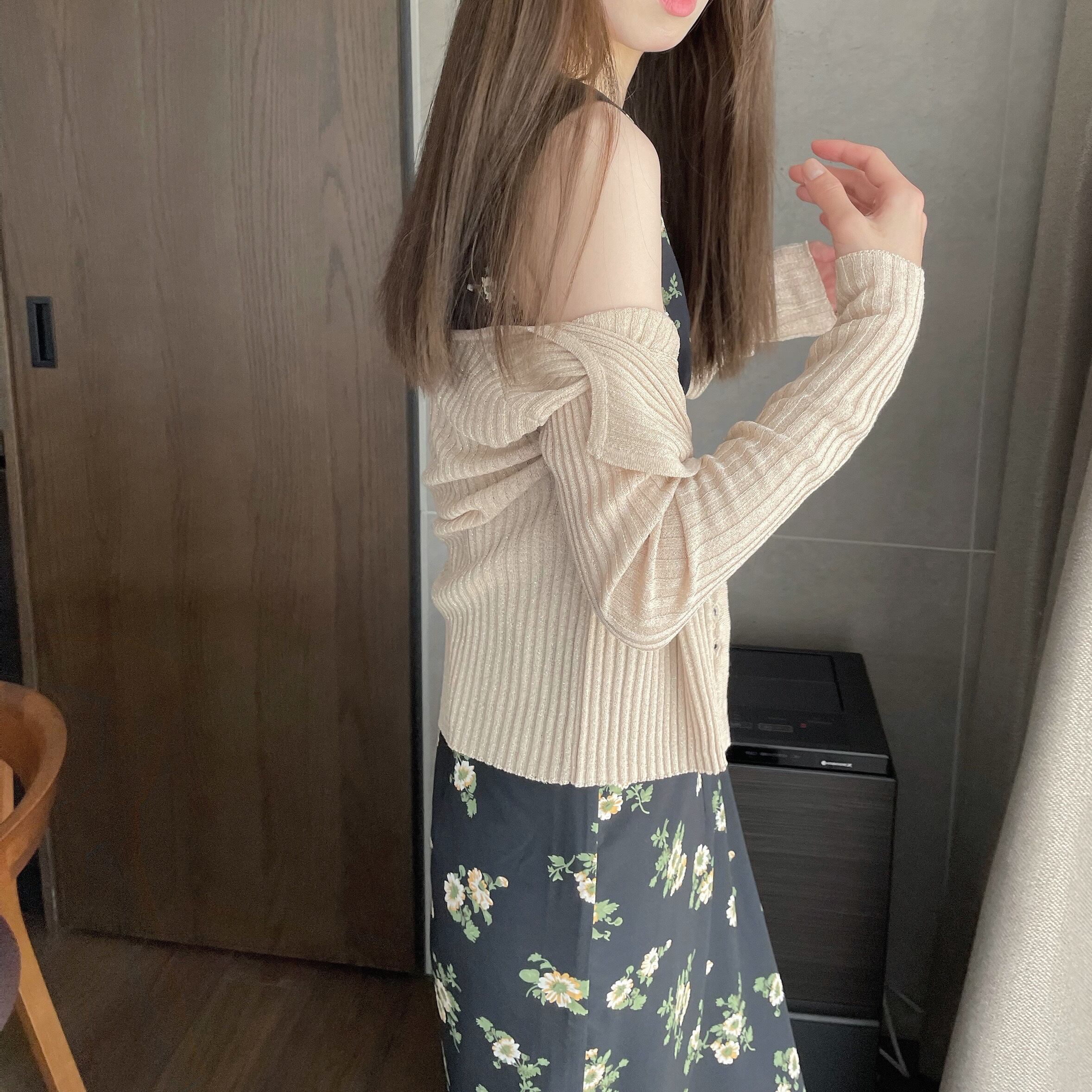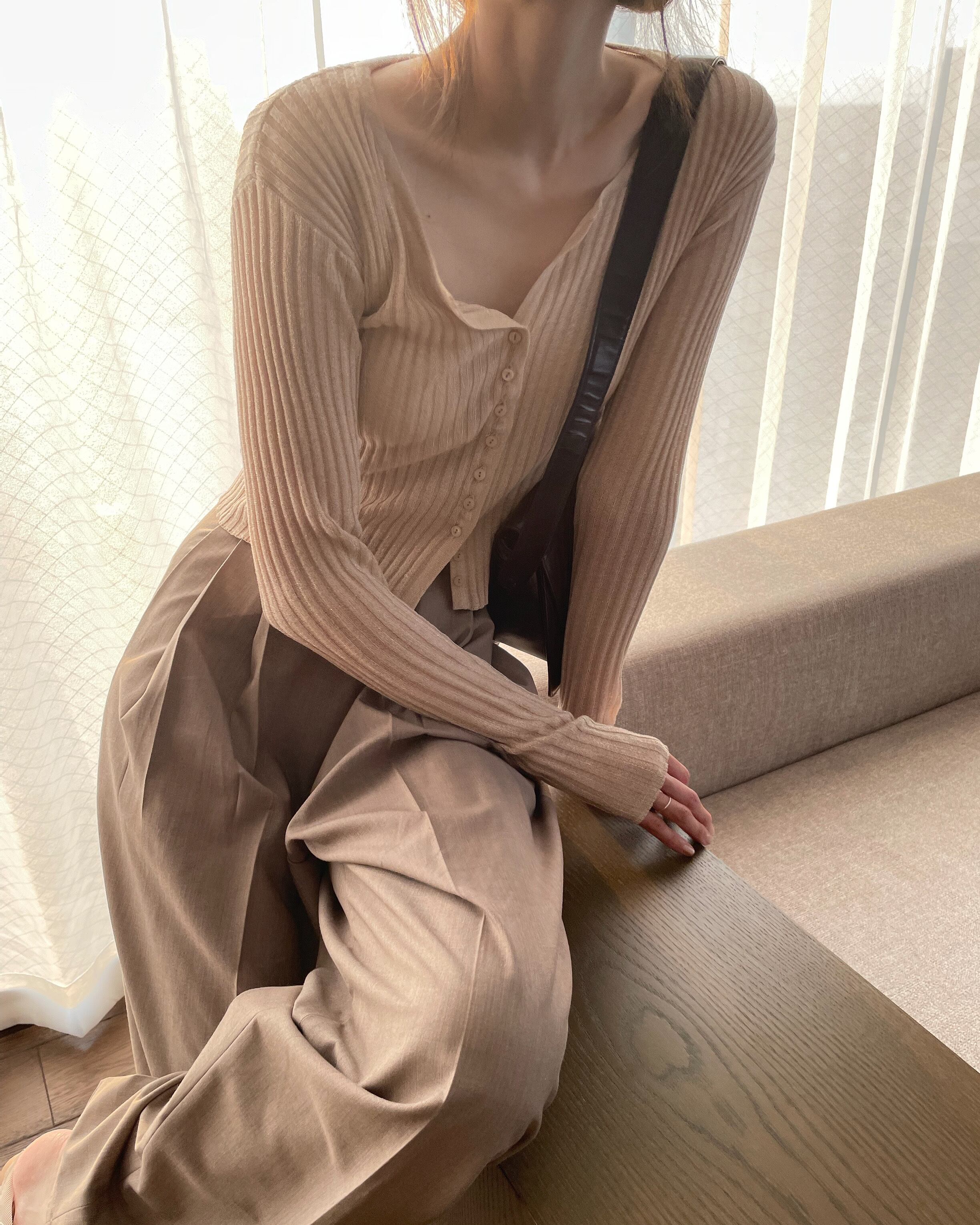 小粒なラメ感が大人可愛いリブカーデ。