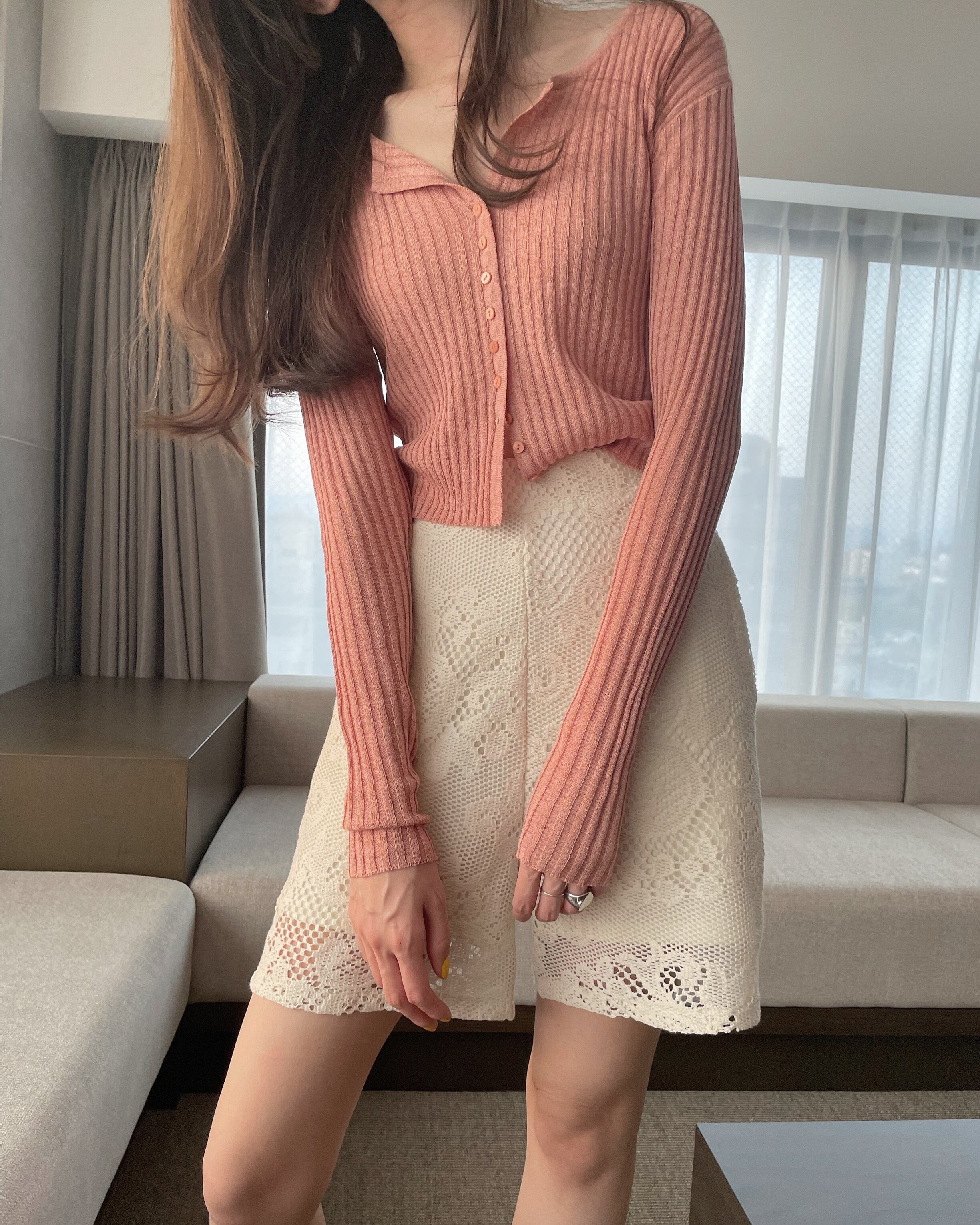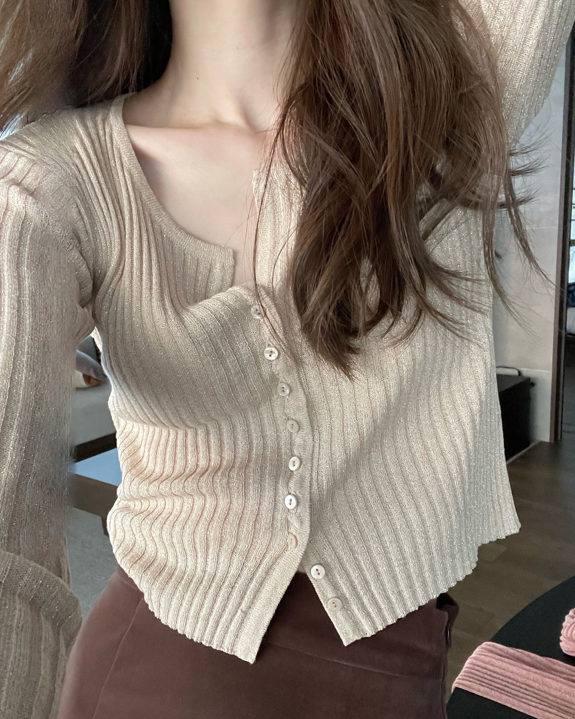 ・PPP rib lamé cardi