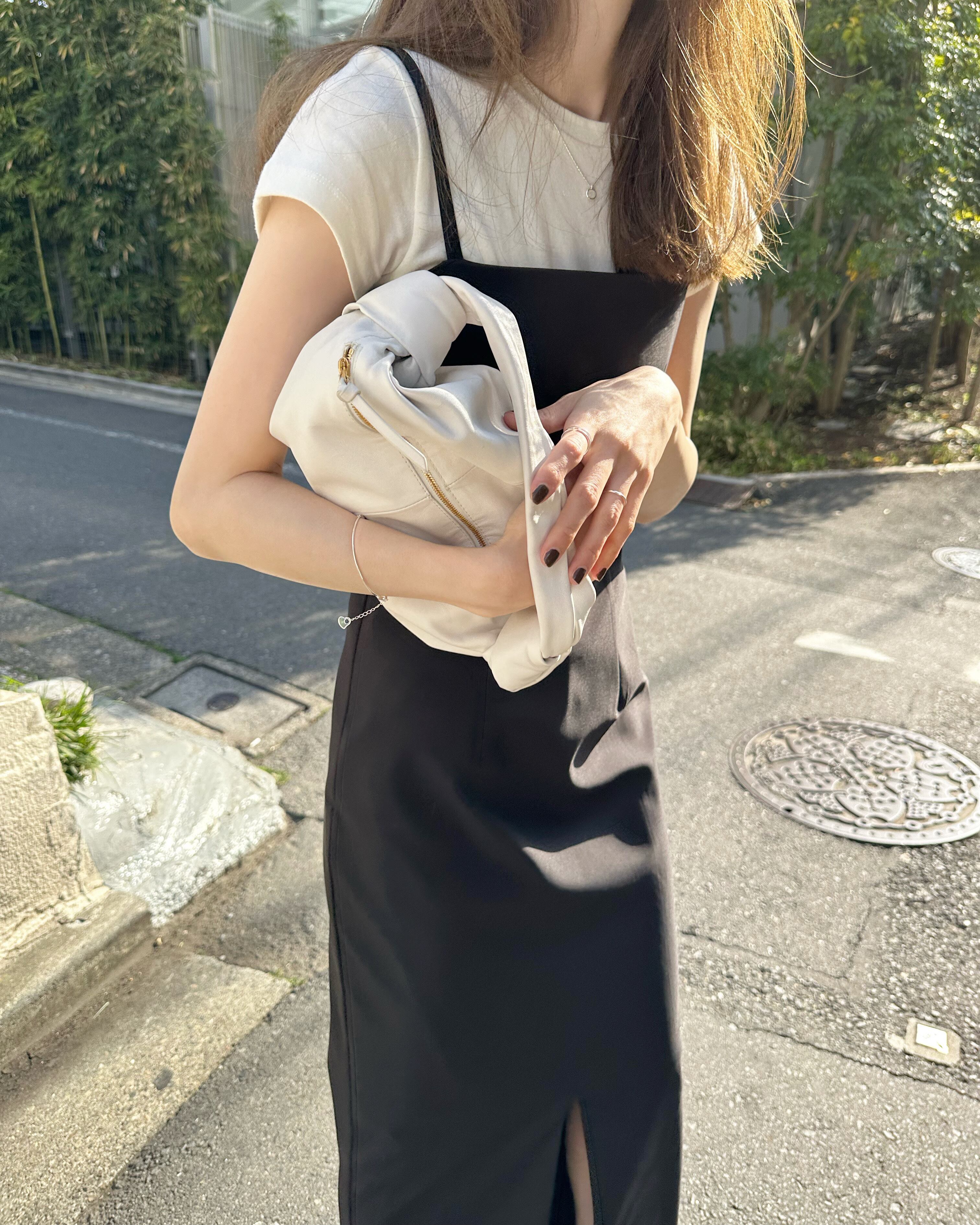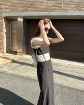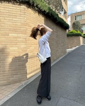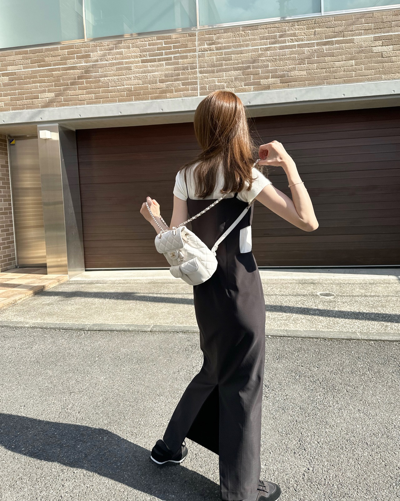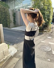 ドレッシーな印象のワンピをあえてロゴTシャツ等でカジュアルダウンさせたスタイリングもおすすめ◎