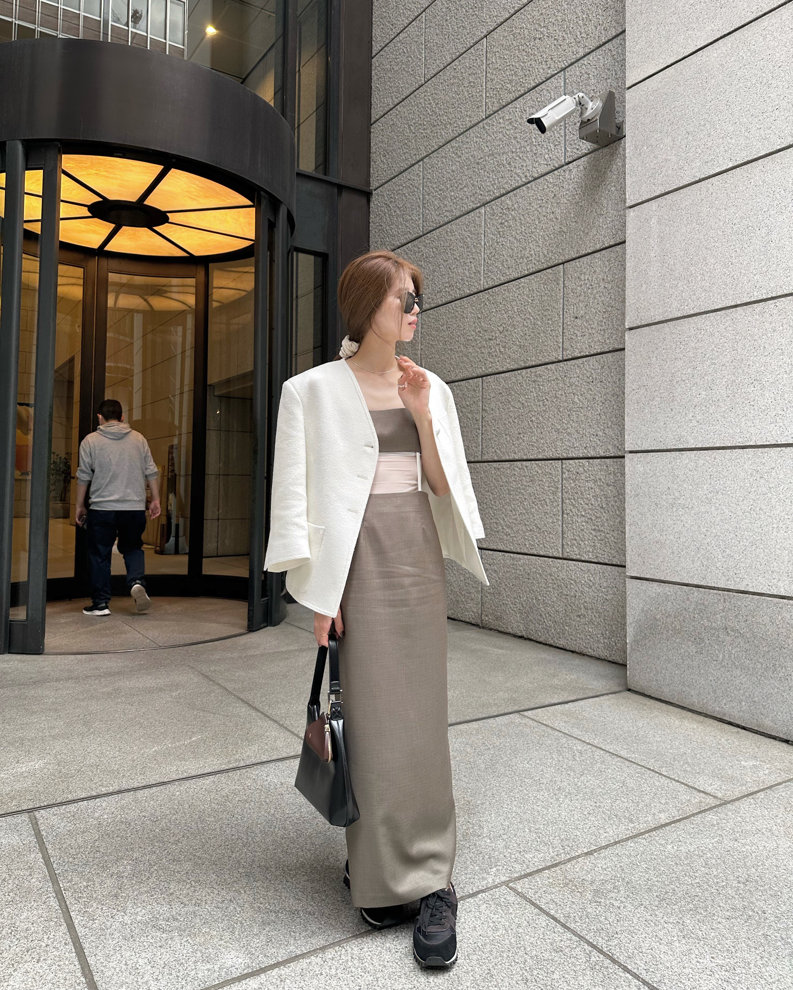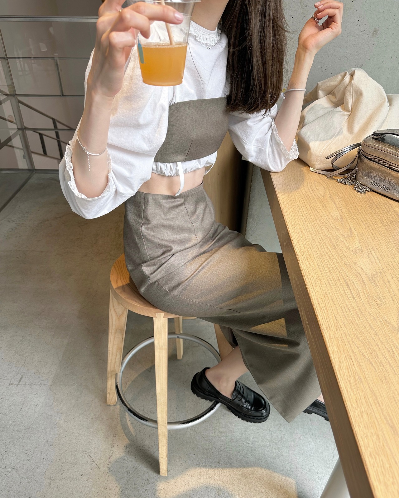これから夏に向けてはタンクトップやキャミソール、Tシャツなどを合わせてお楽しみ下さい。