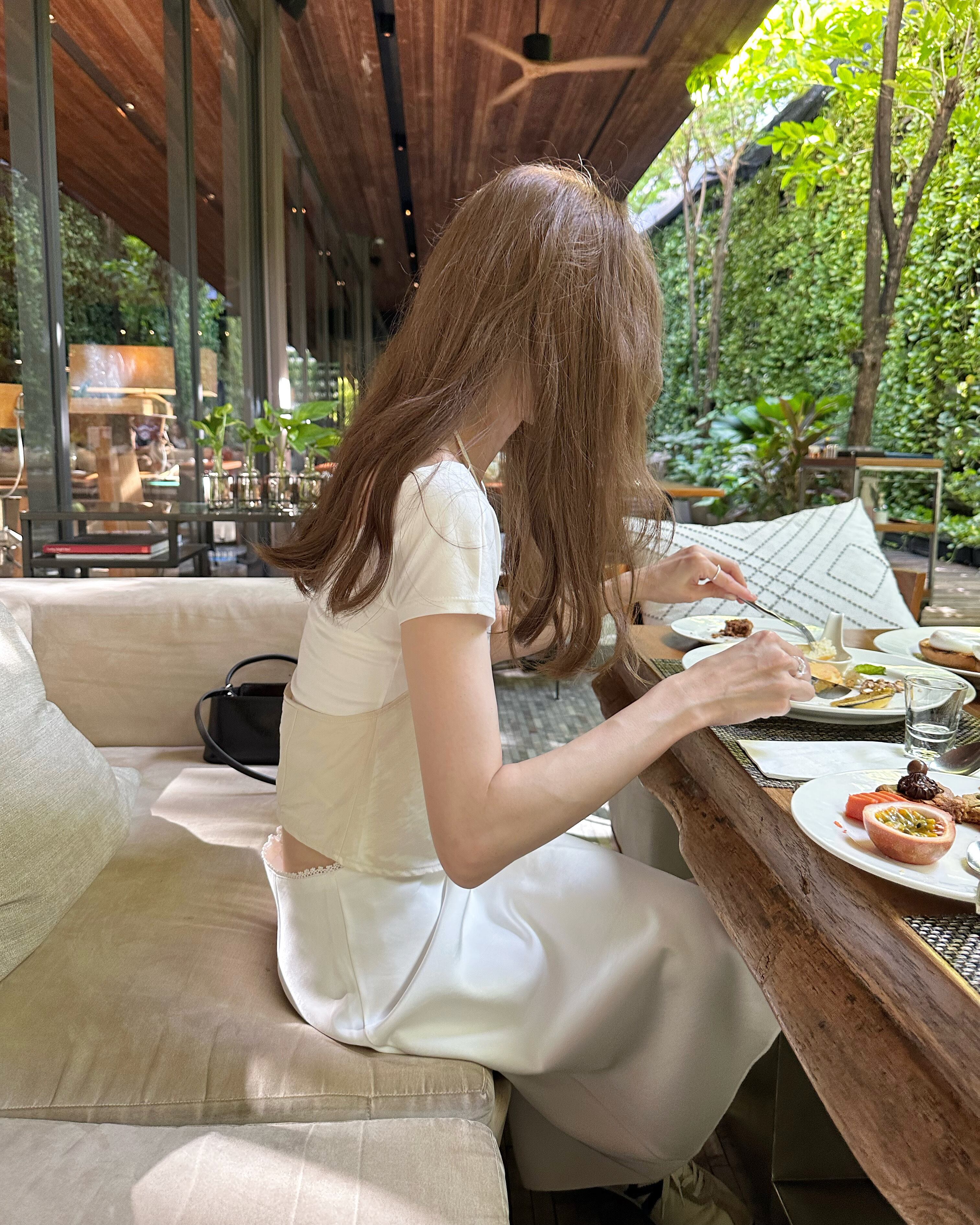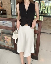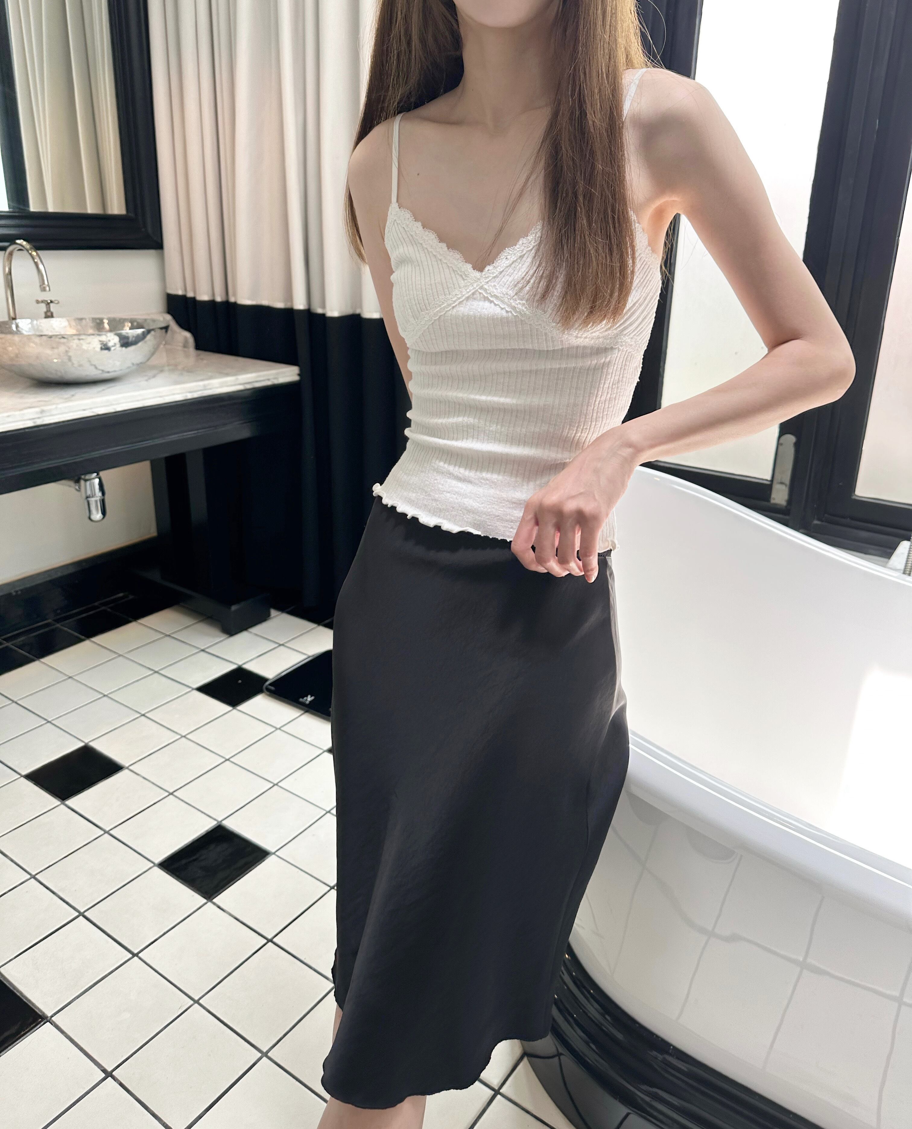ウエストのレースが可愛いサテンスカート❤︎