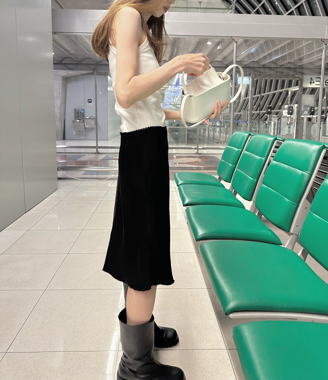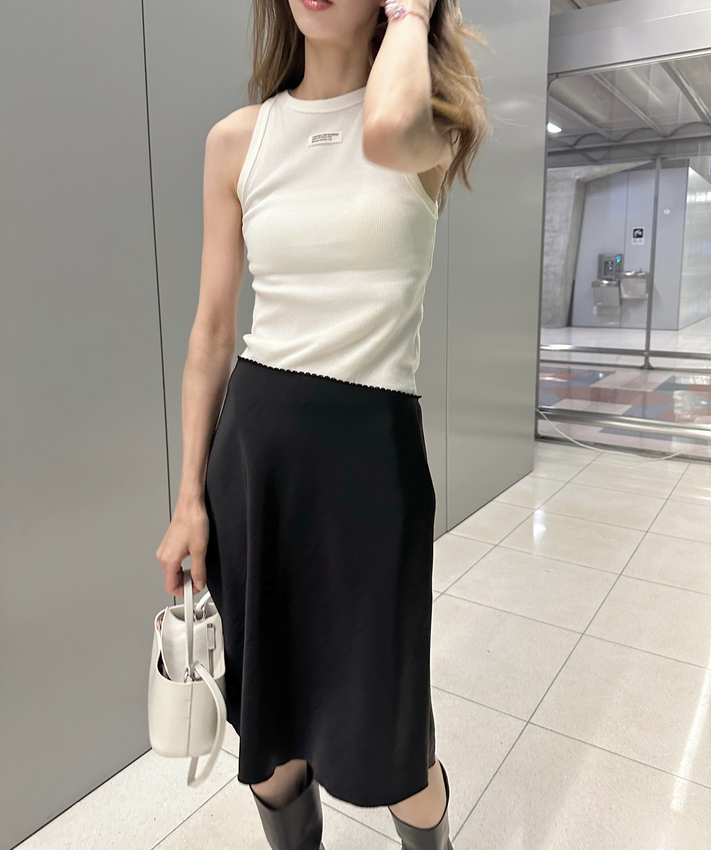 秋口にはニットを被せたスタイルも◎
