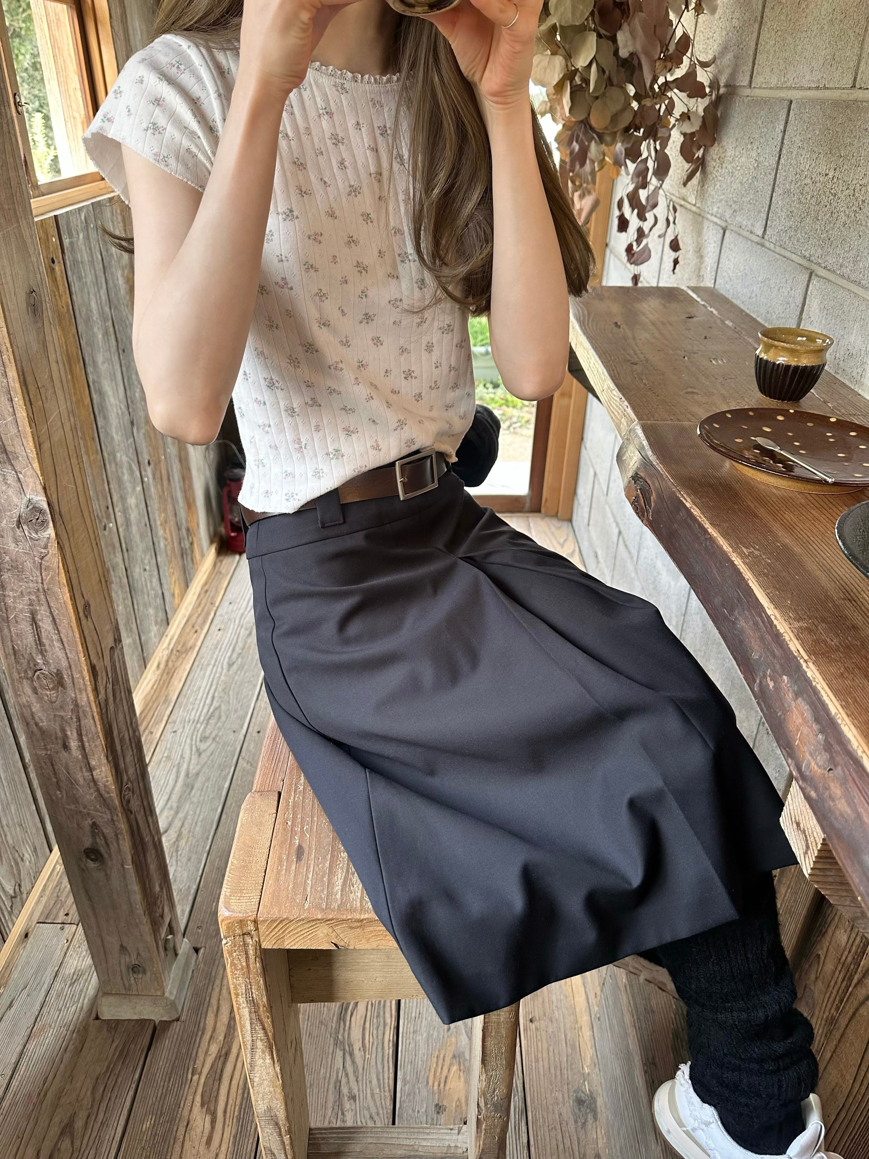 前後に入った深いセンタータックがポイントのsk。
