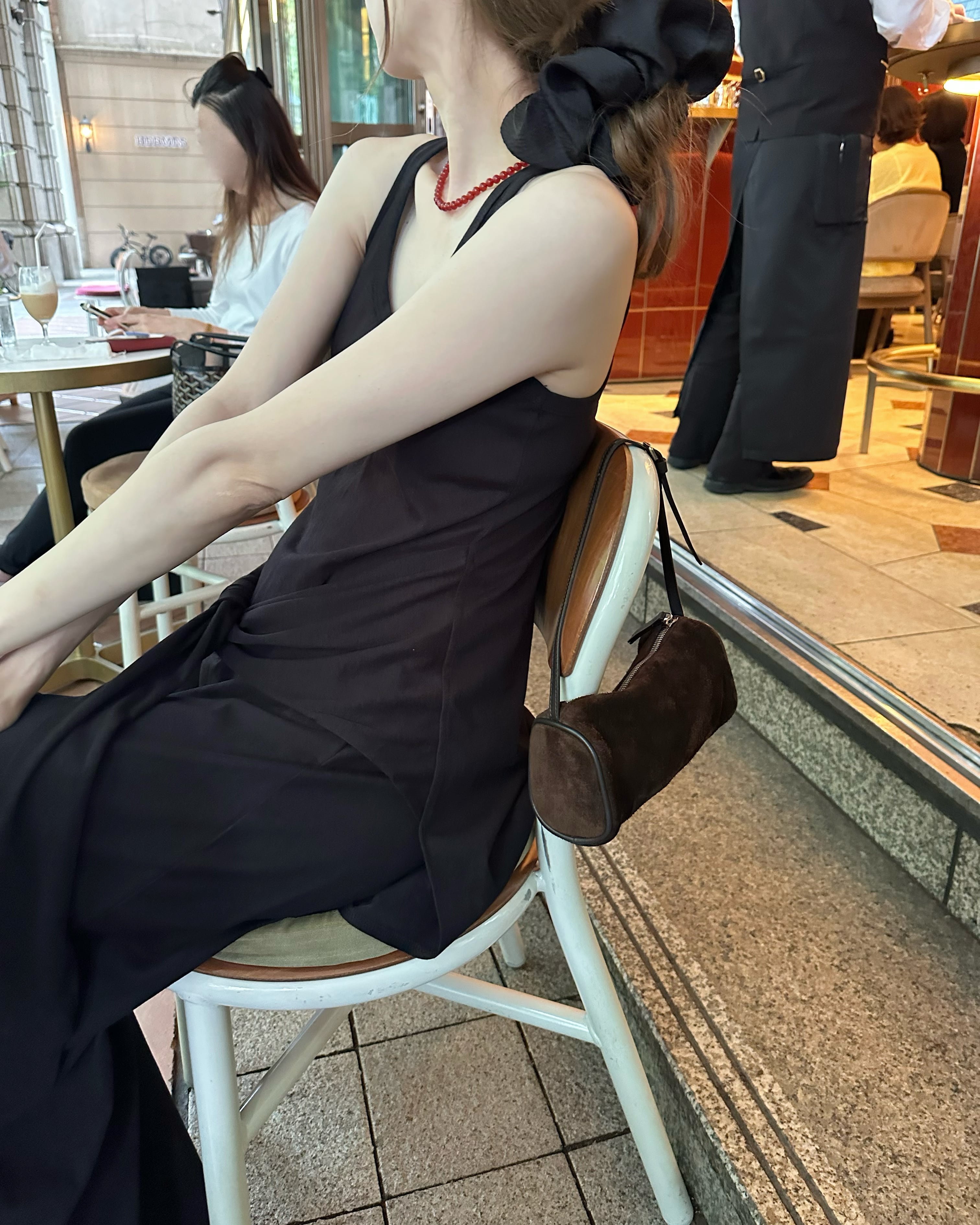 落ち感のあるずるっとマキシ丈。ドラマチックなAラインシルエットが女性らしさを引き立てます。